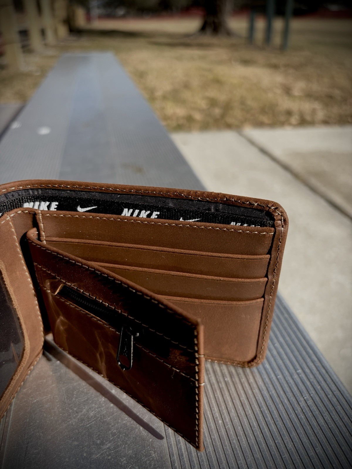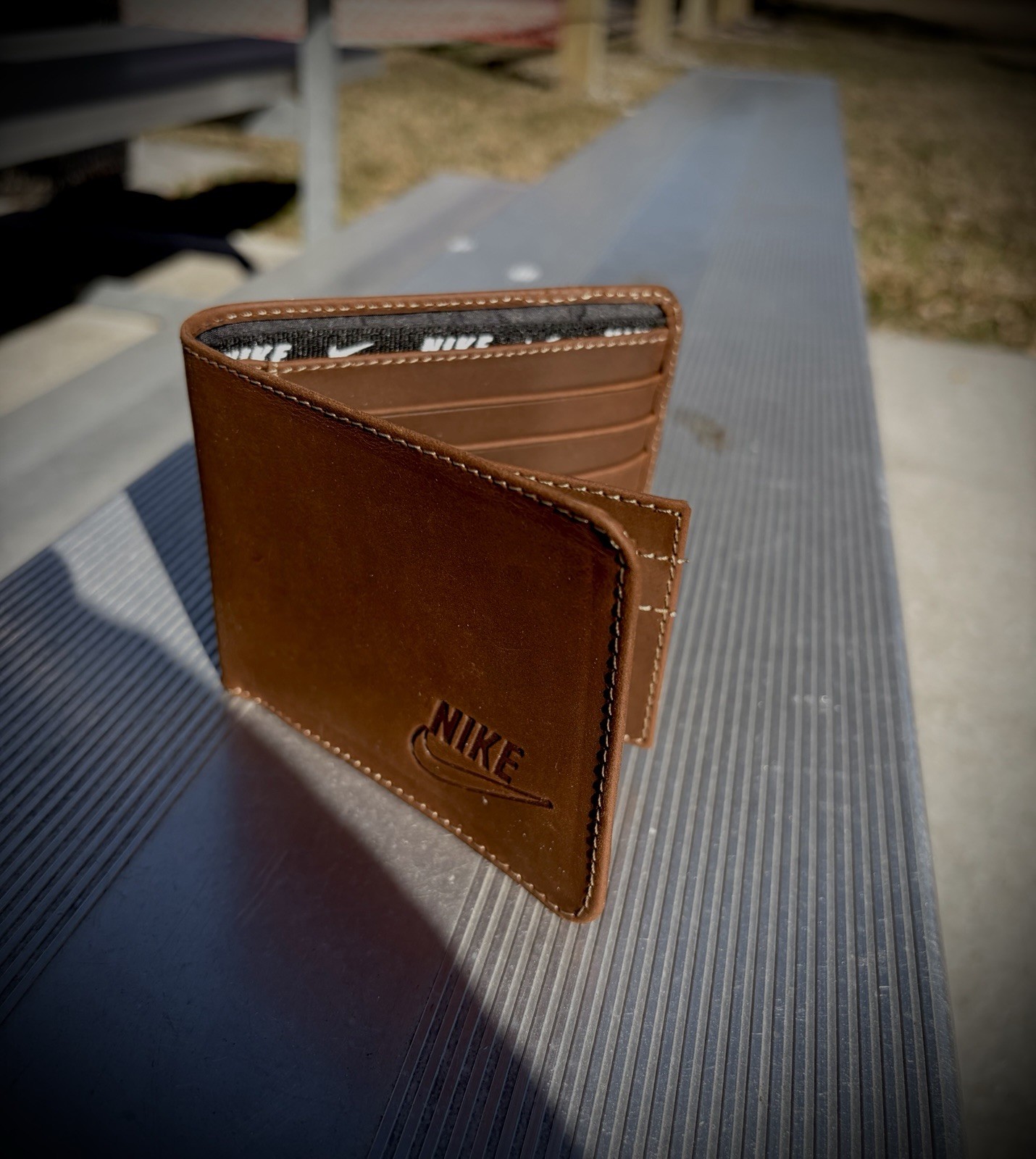 Old School Vintage Nike Leather Bifold Wallet - Logo 1990 Brown Solid ID Slot