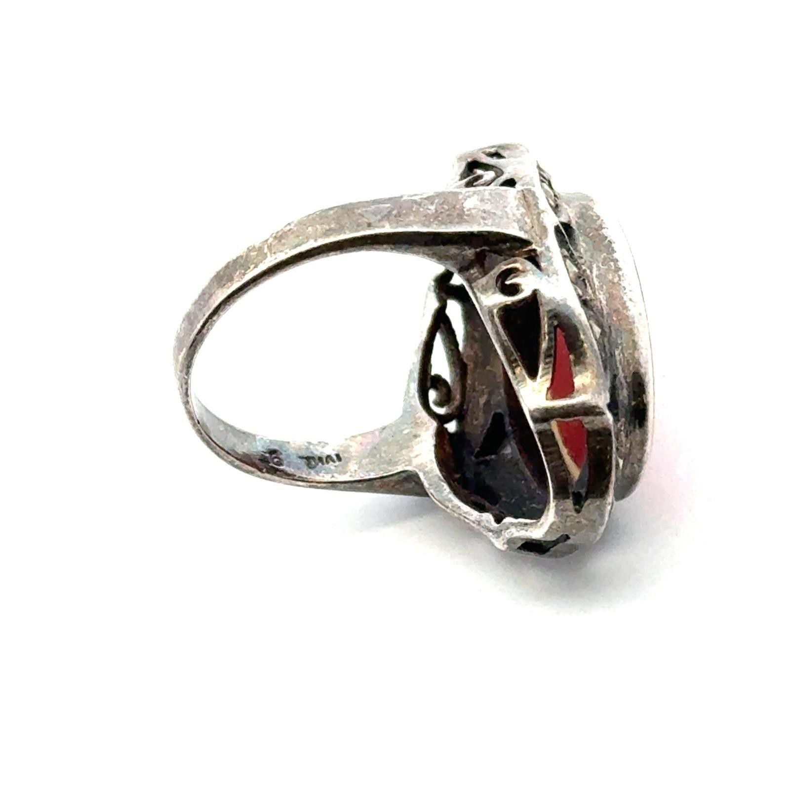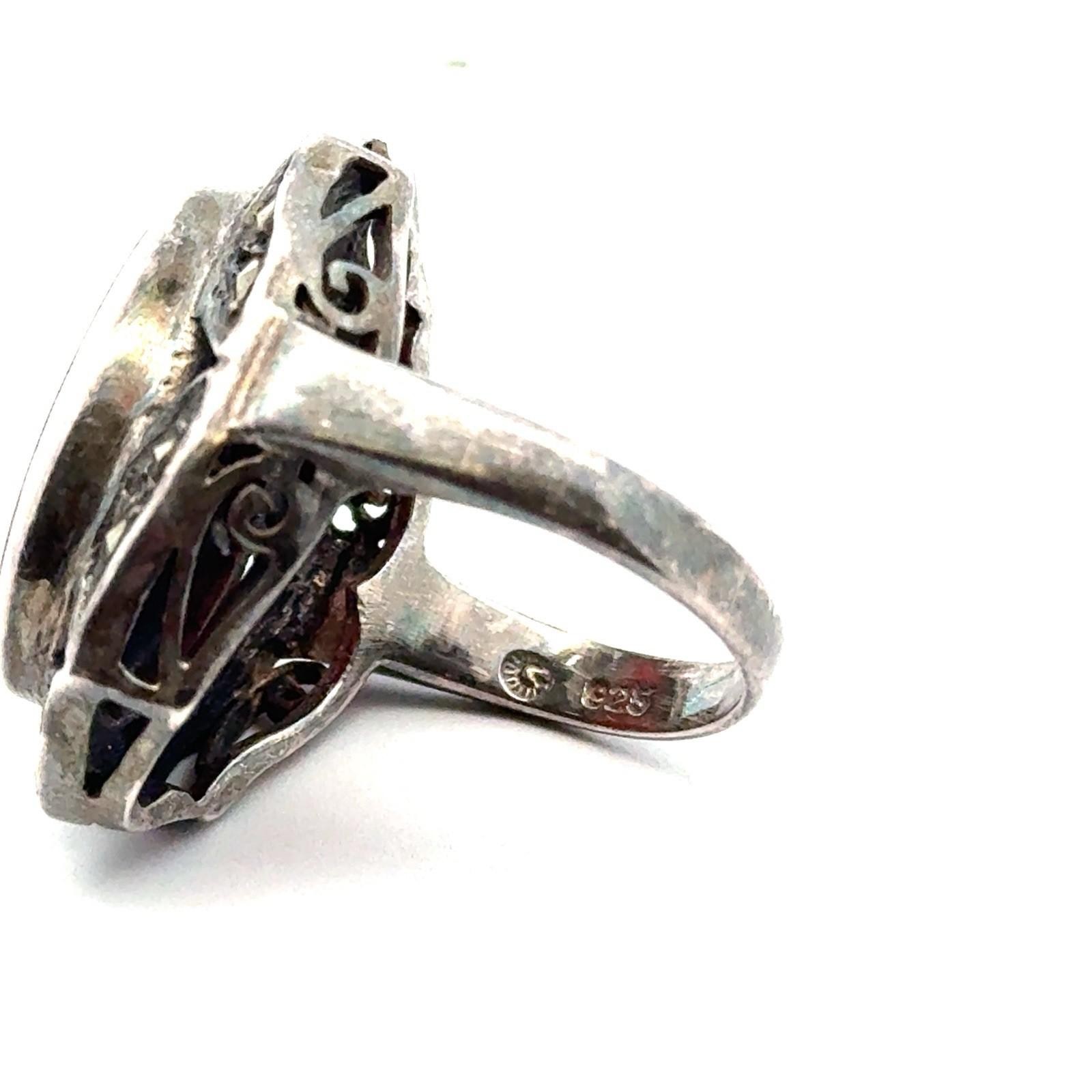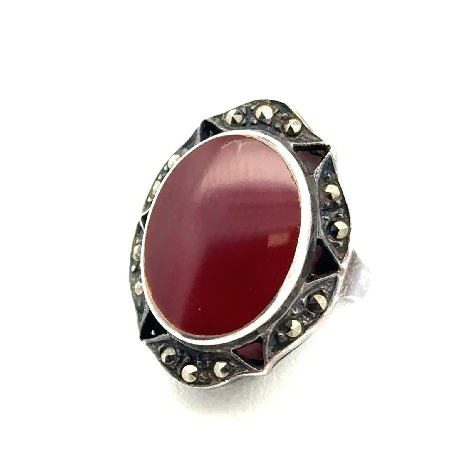 как выглядит .925 Sterling Silver Carnelian Cabochon Marcasite Ring, Size-6, 6.7g фото