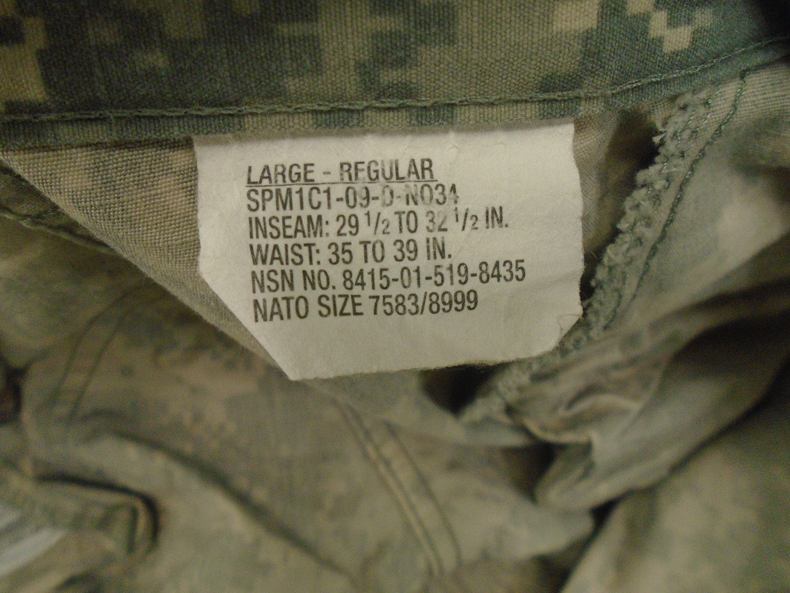 • US Military Army Combat Uniform ACU Pants Trousers Size Large Regular 2009 126-P