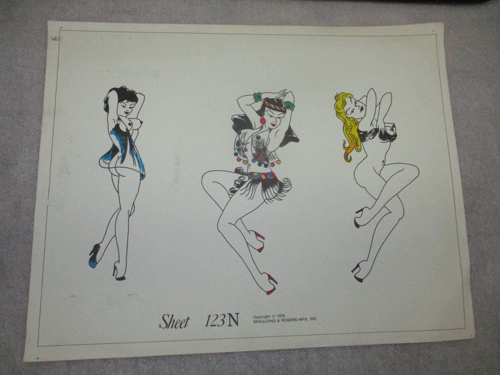 VINTAGE 1978 SPAULDING ROGERS TATTOO FLASH PRODUCTION SHEETS SET OF 5