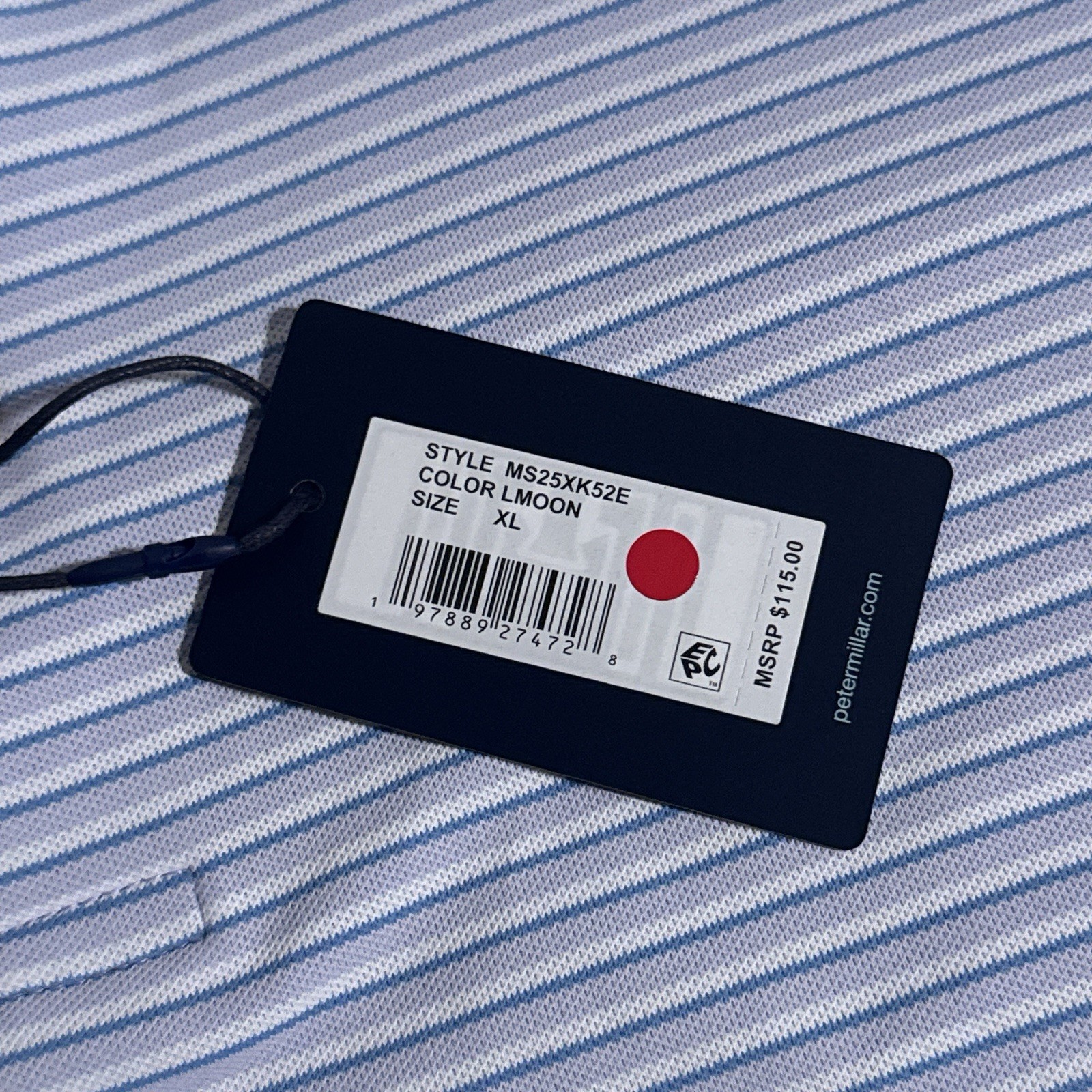 NEW Peter Millar Crown Crafted Men's Size XL Purple White Stripe Mesh Golf Polo