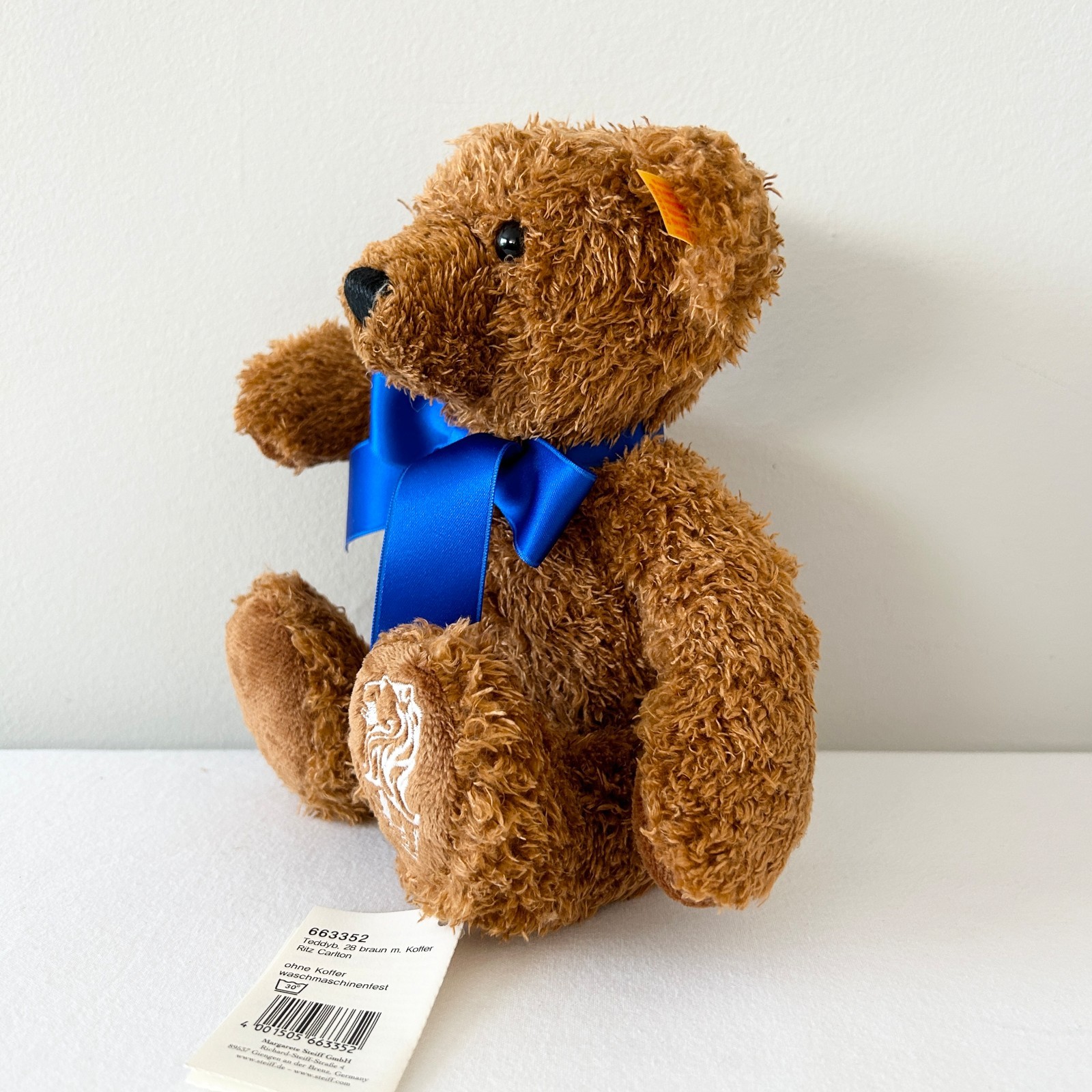 как выглядит New STEIFF Ritz Carlton Bear Plush In Suitcase Brown Embroidered Logo NWT фото