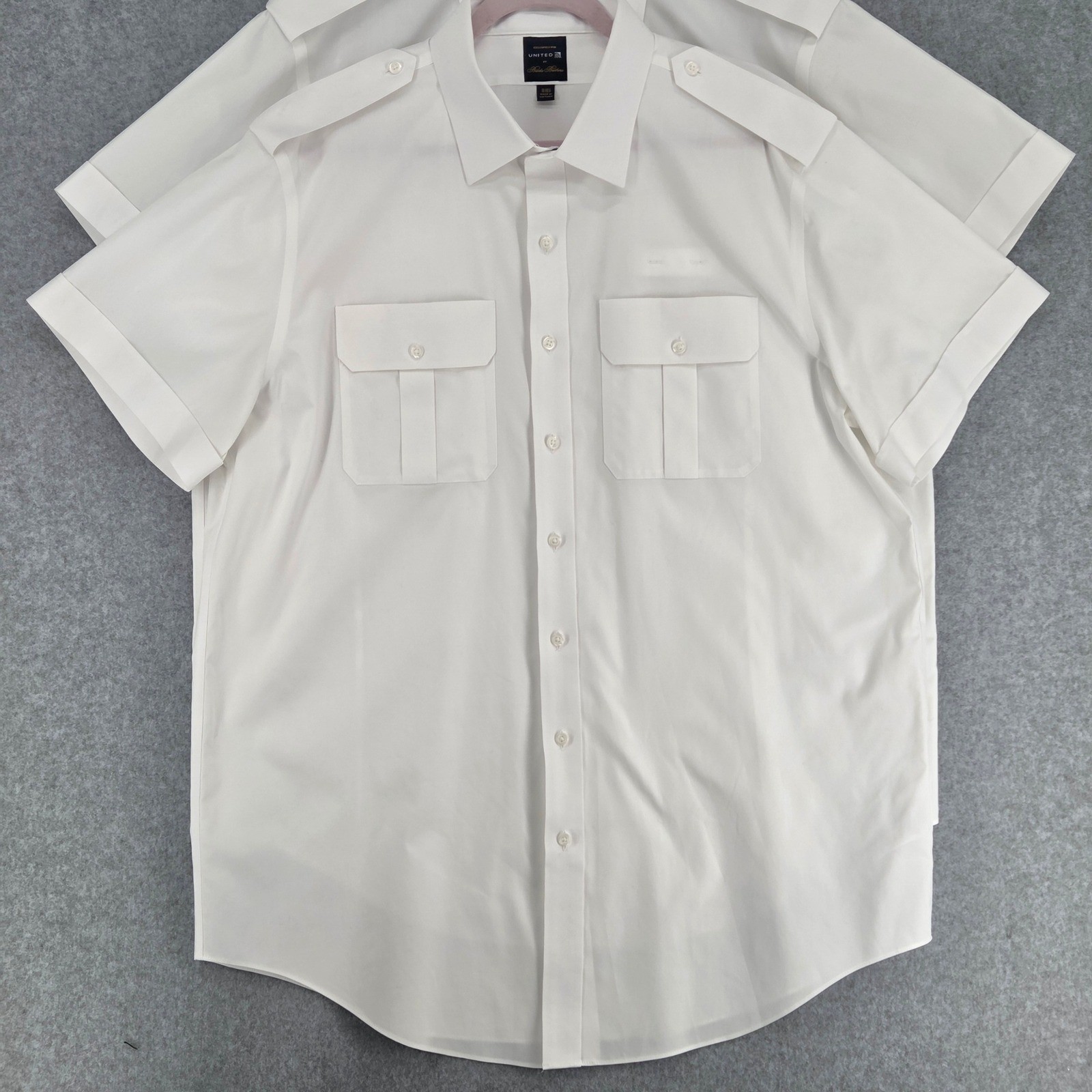как выглядит Brooks Brothers United Airlines Men 18 Regular Set of 2 Pilot Button Shirt SS фото