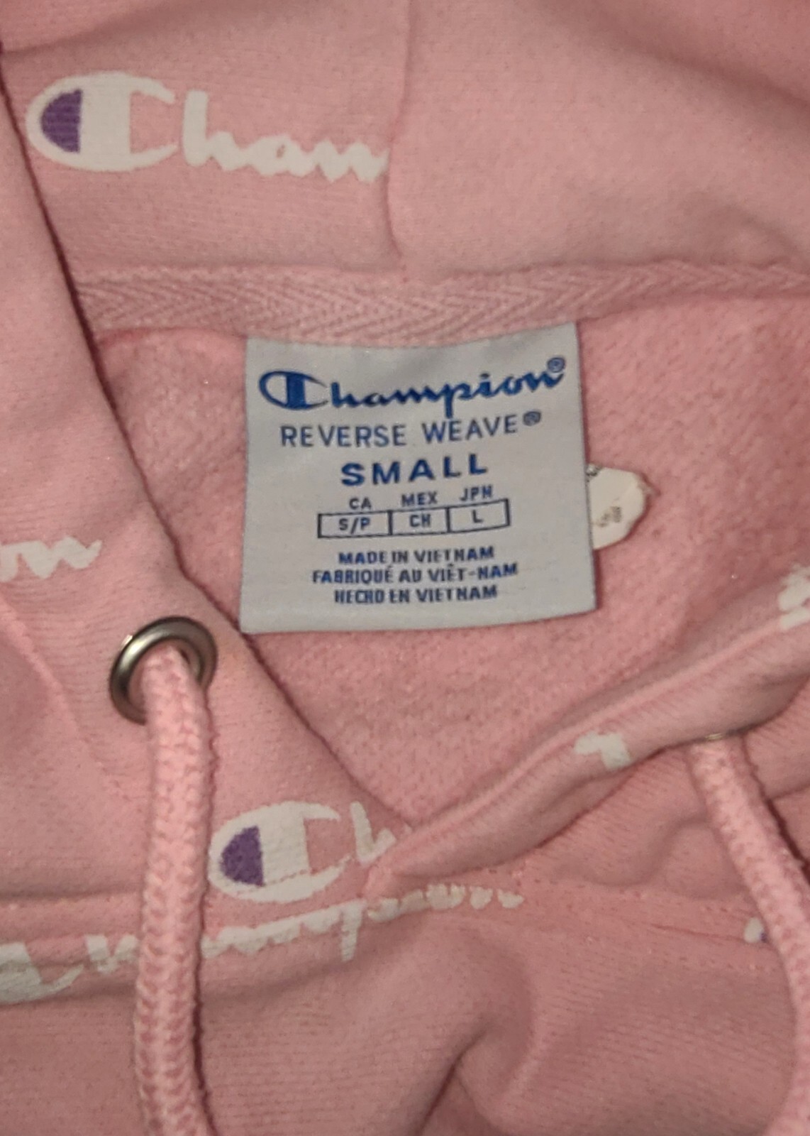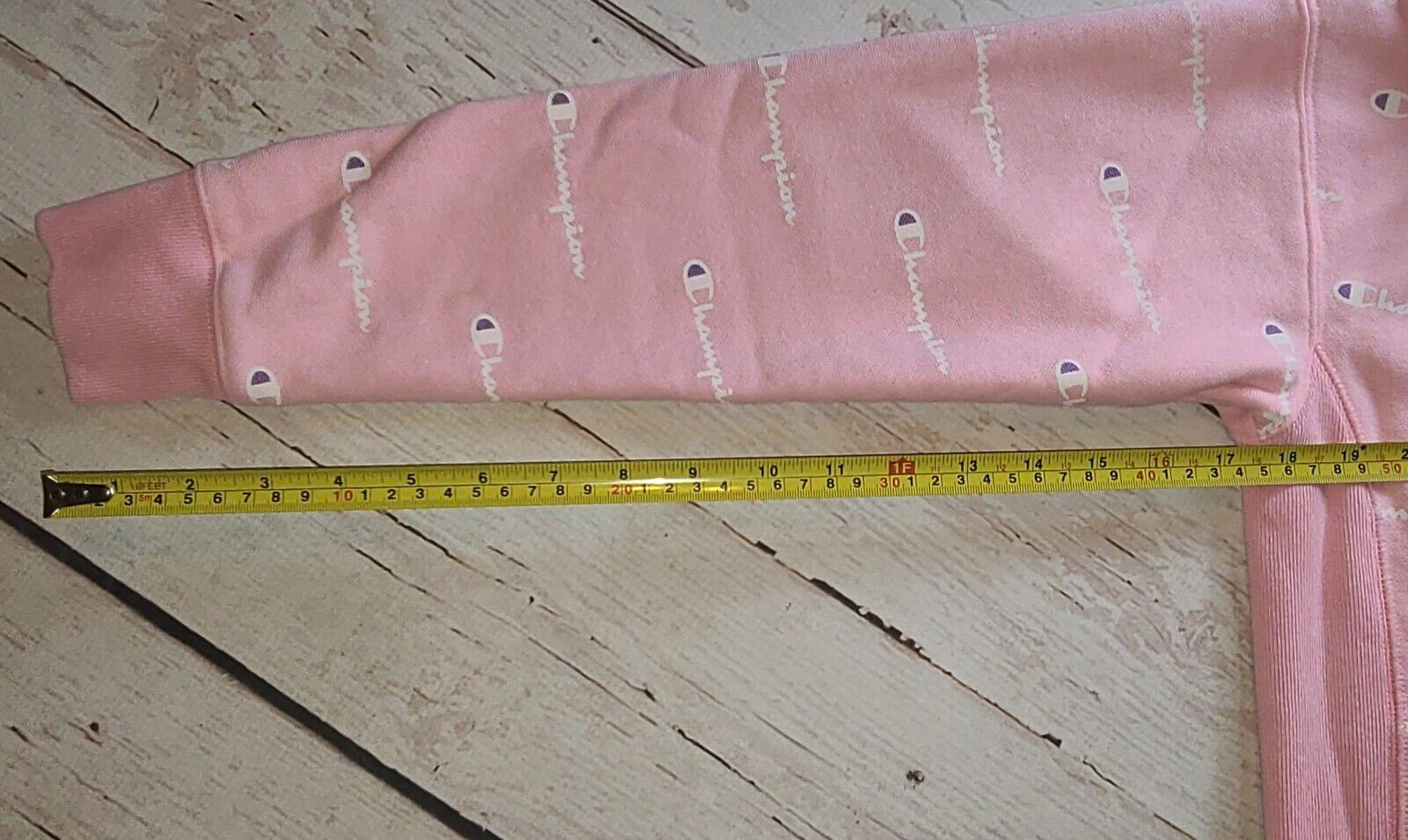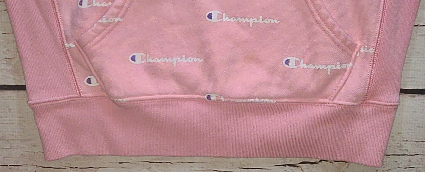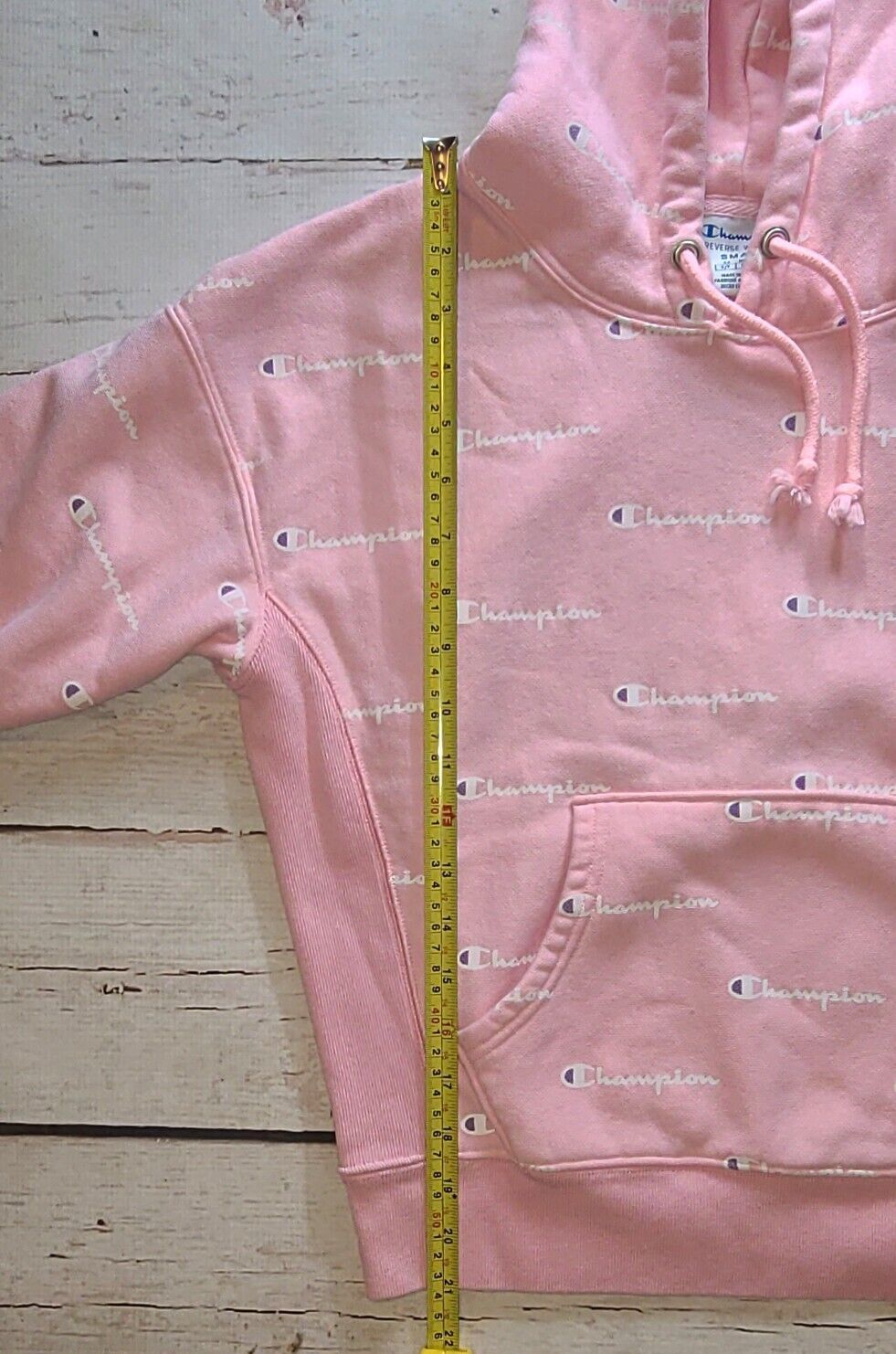Champion All Over Logo Print Reverse Weave Pink Hooded Sweatshirt Hoodie Women S