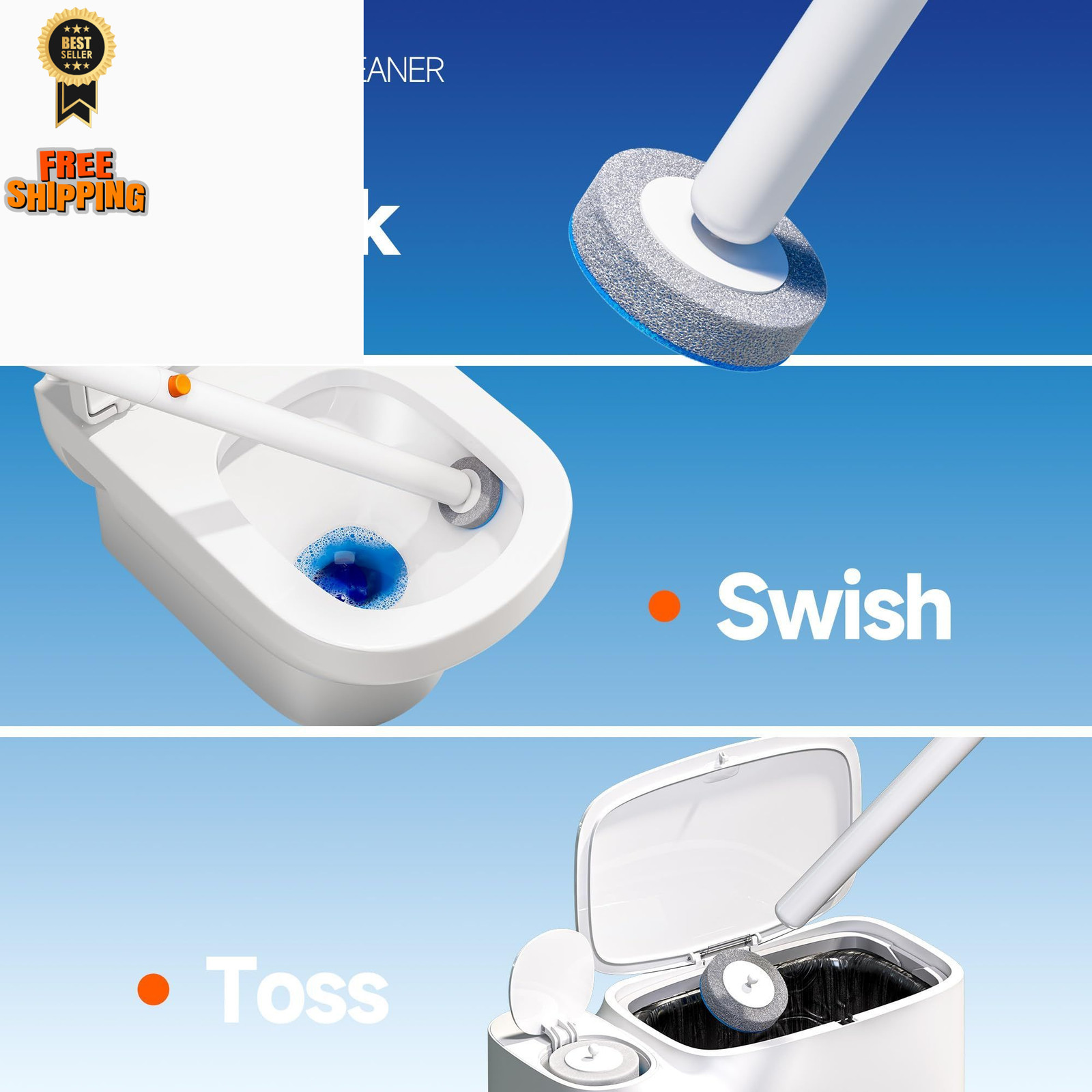 CTIME - 36 Replacement Toilet Brush Heads, 36 replacement heads, Blue