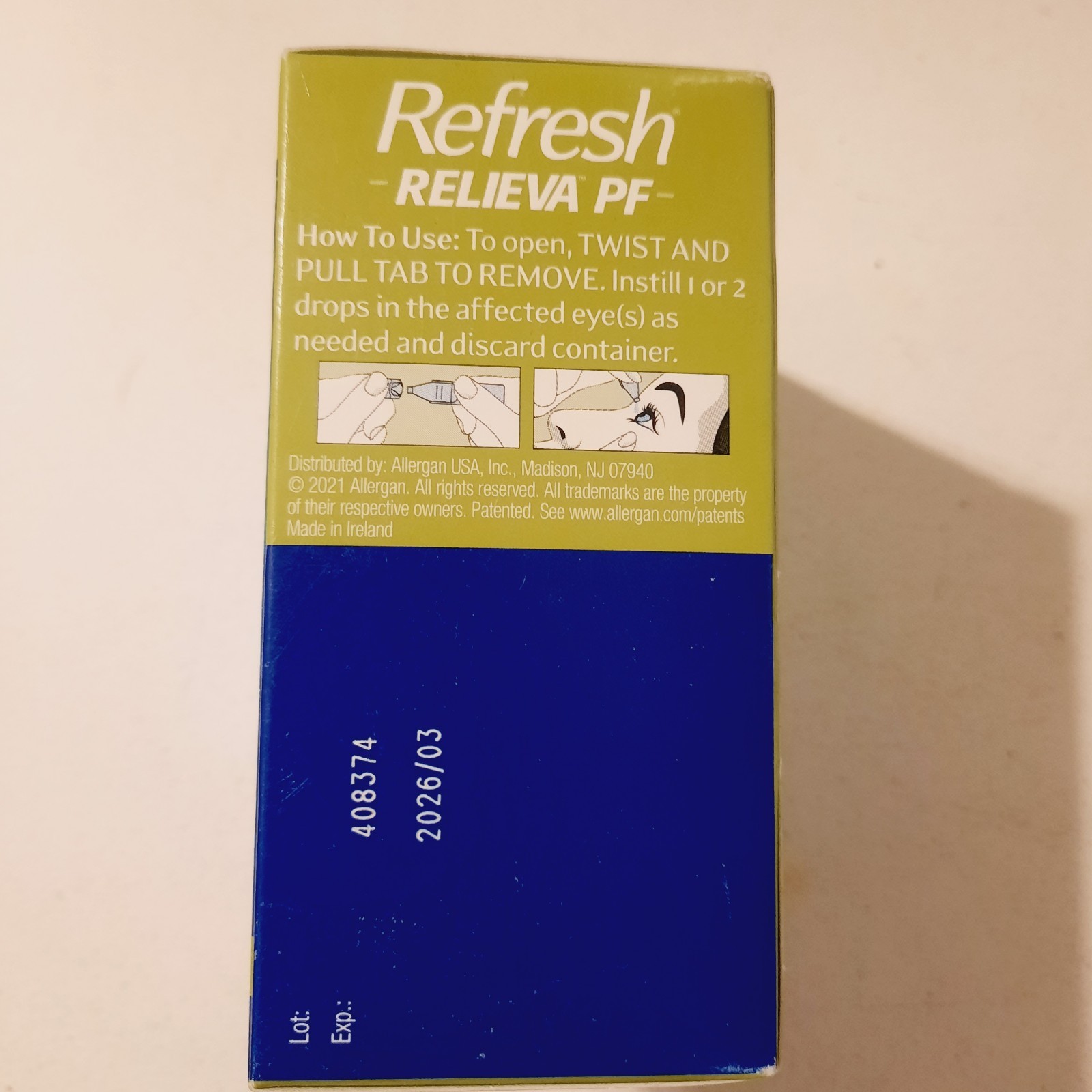 Refresh Relieva PF Lubricant Eye Drops Sealed 30 Vials