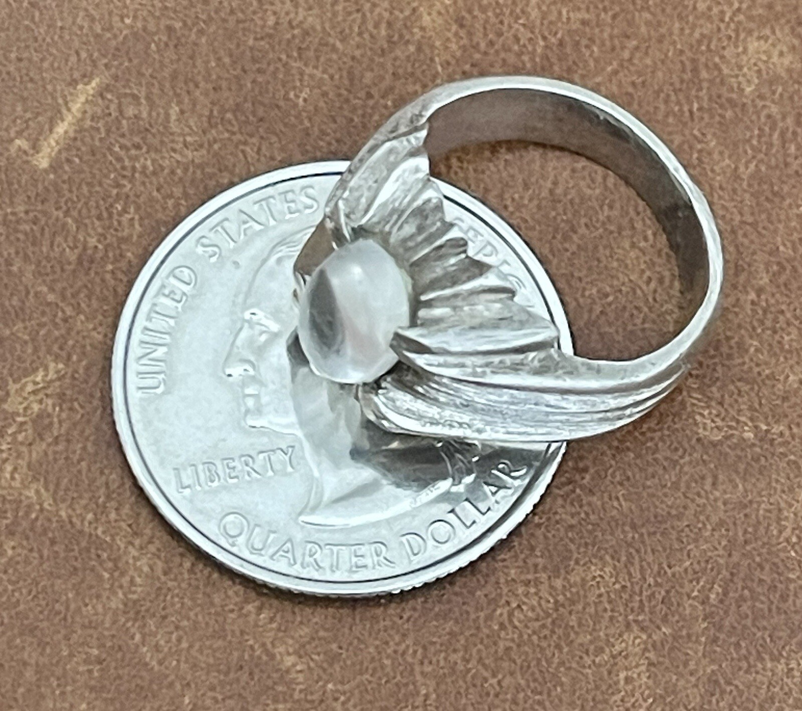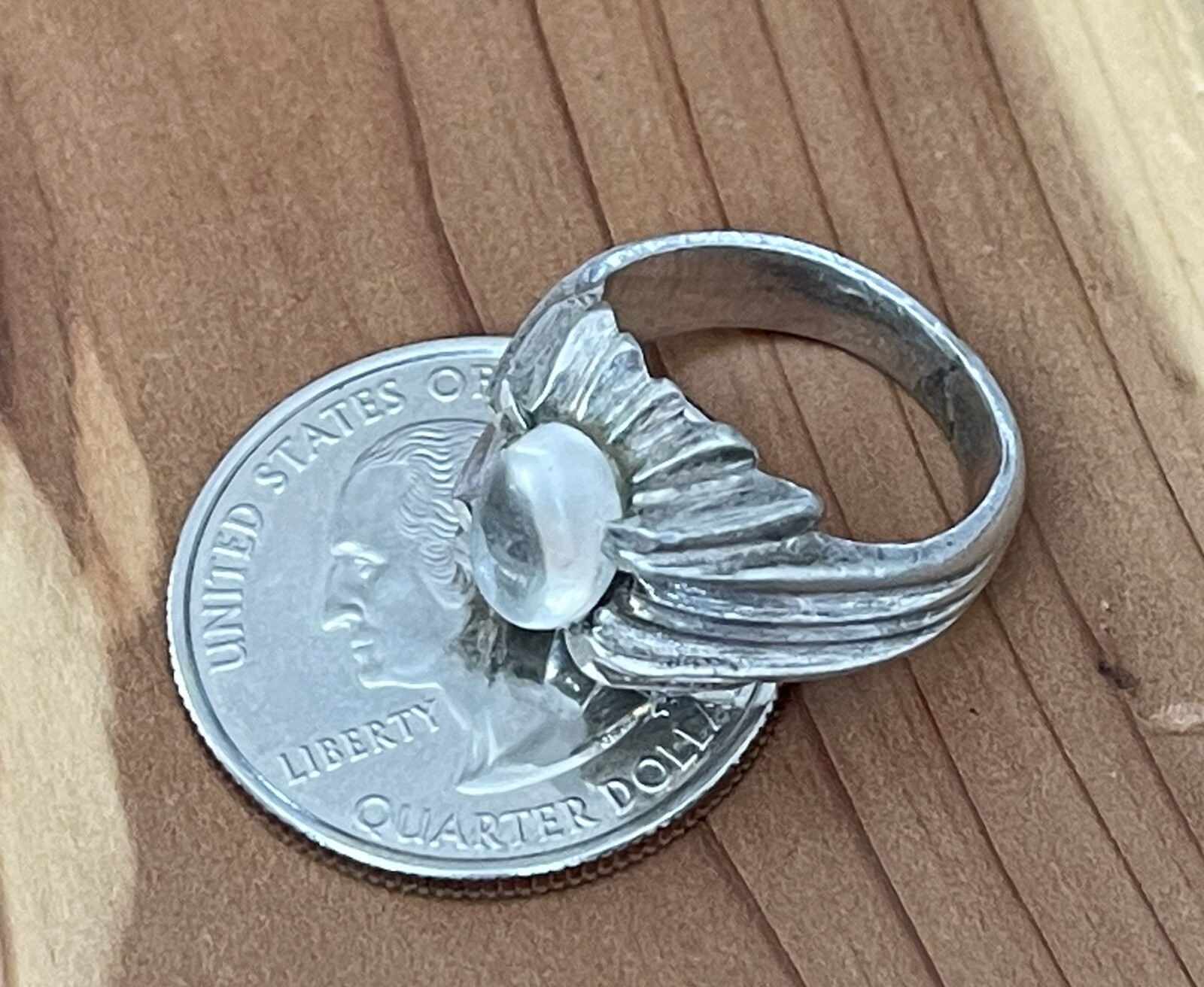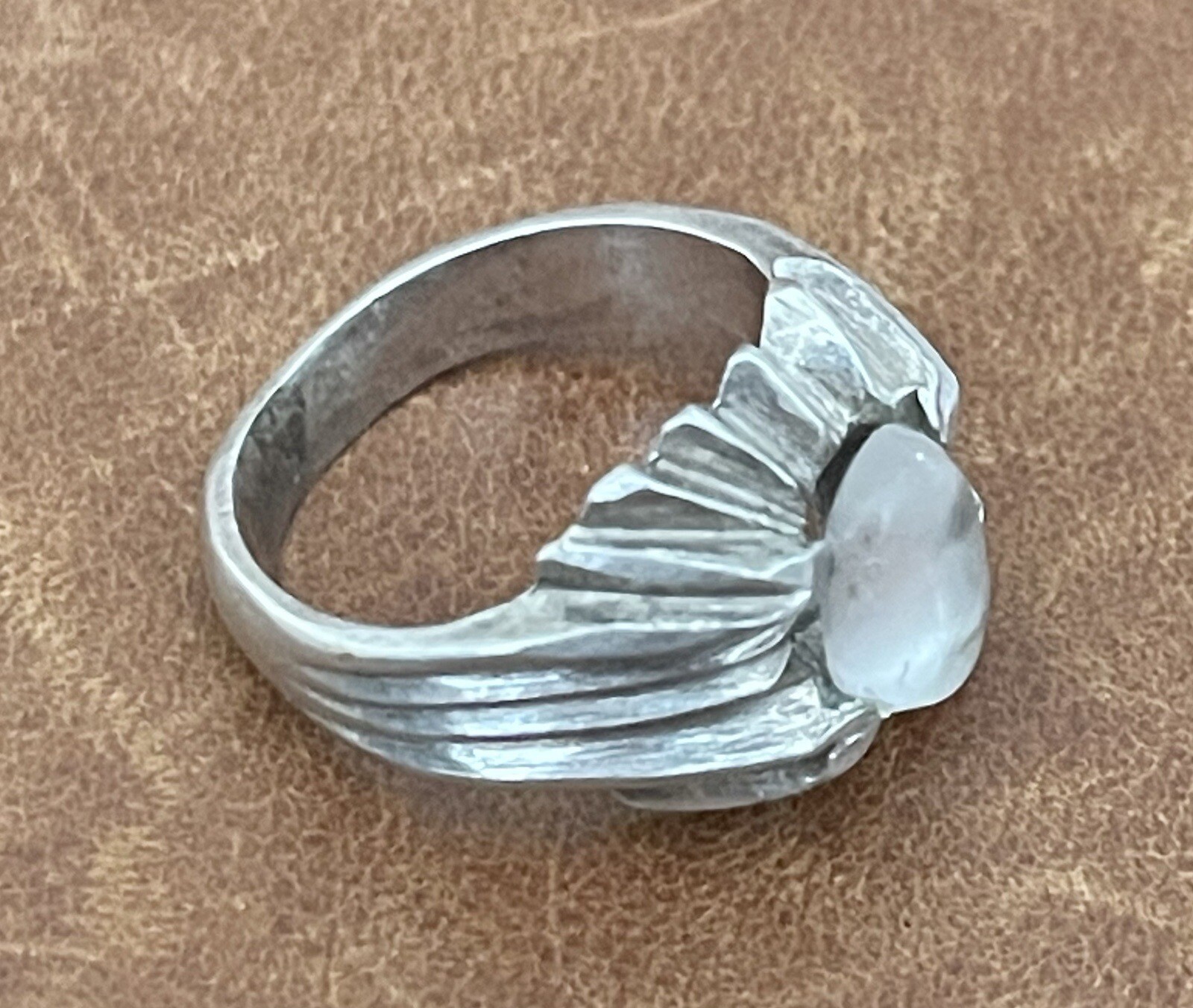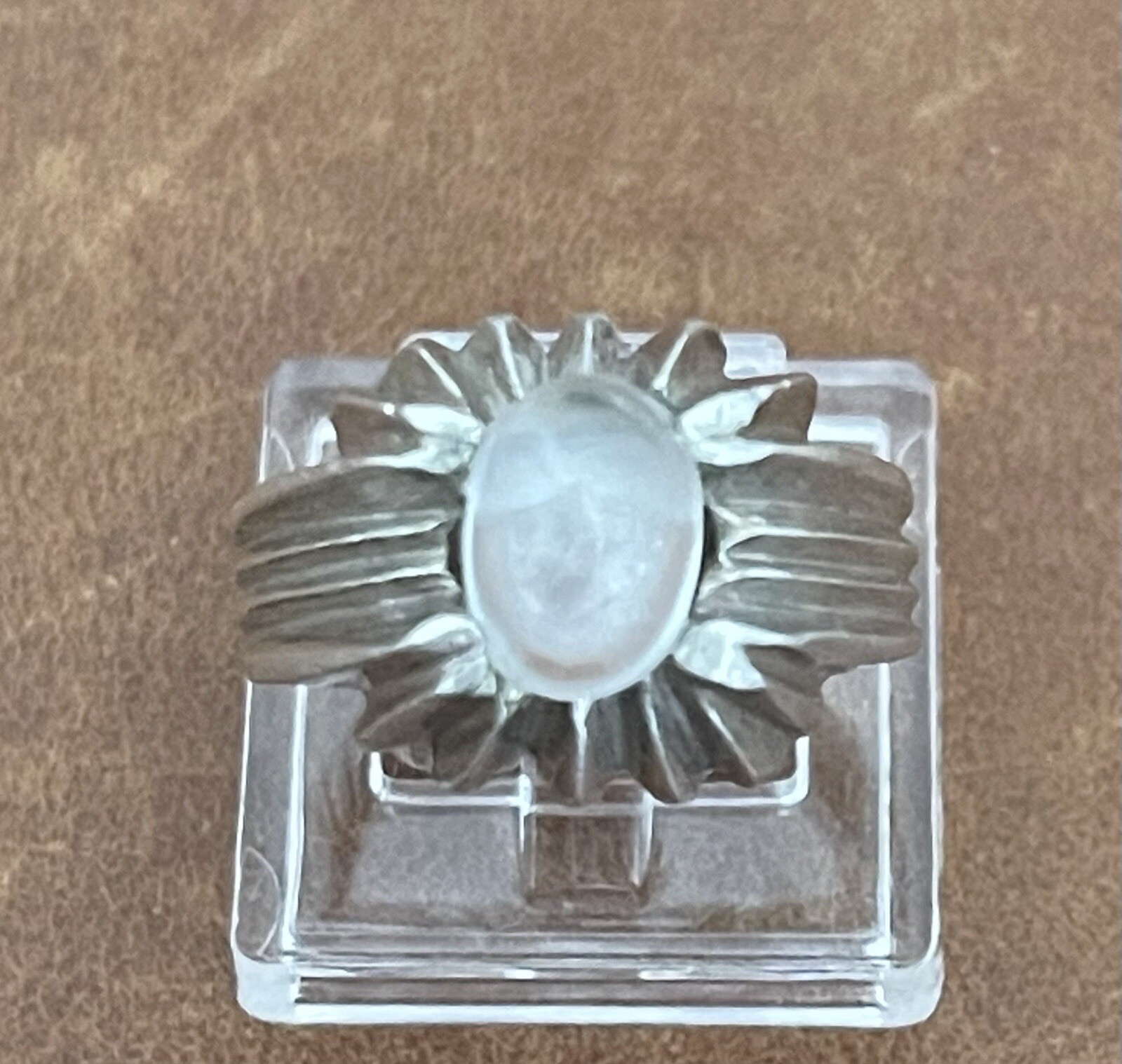 как выглядит Vintage Natural Oval Moonstone Sterling Silver 925 Rubbed Design Ring Size 6 фото