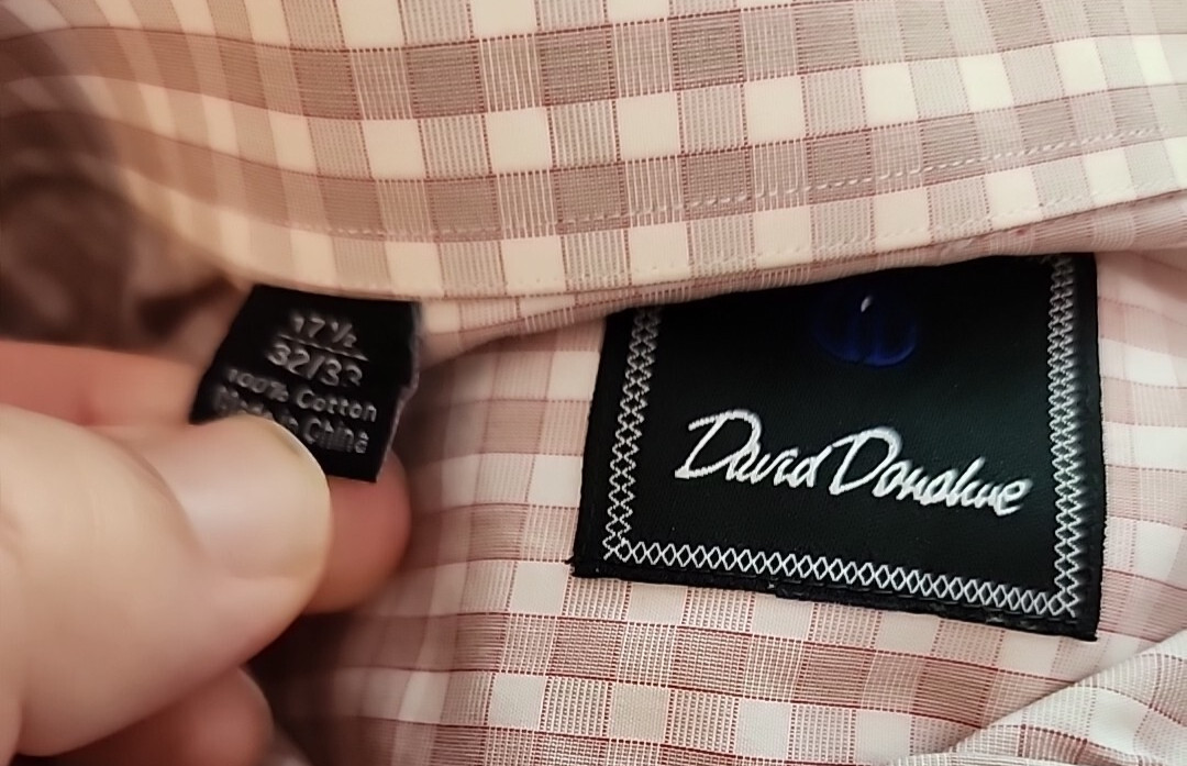 как выглядит David Donahue Regular Fit Beige Button Up Dress Shirt Mens Size 17.5 32/33 R1 фото
