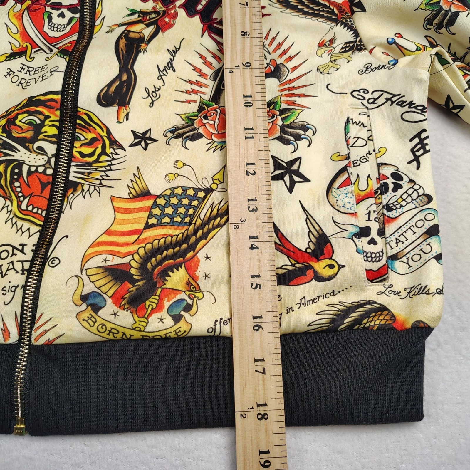как выглядит NWT Ed Hardy Cropped Track Jacket Womens XL Shrunken Flashboard Multi фото