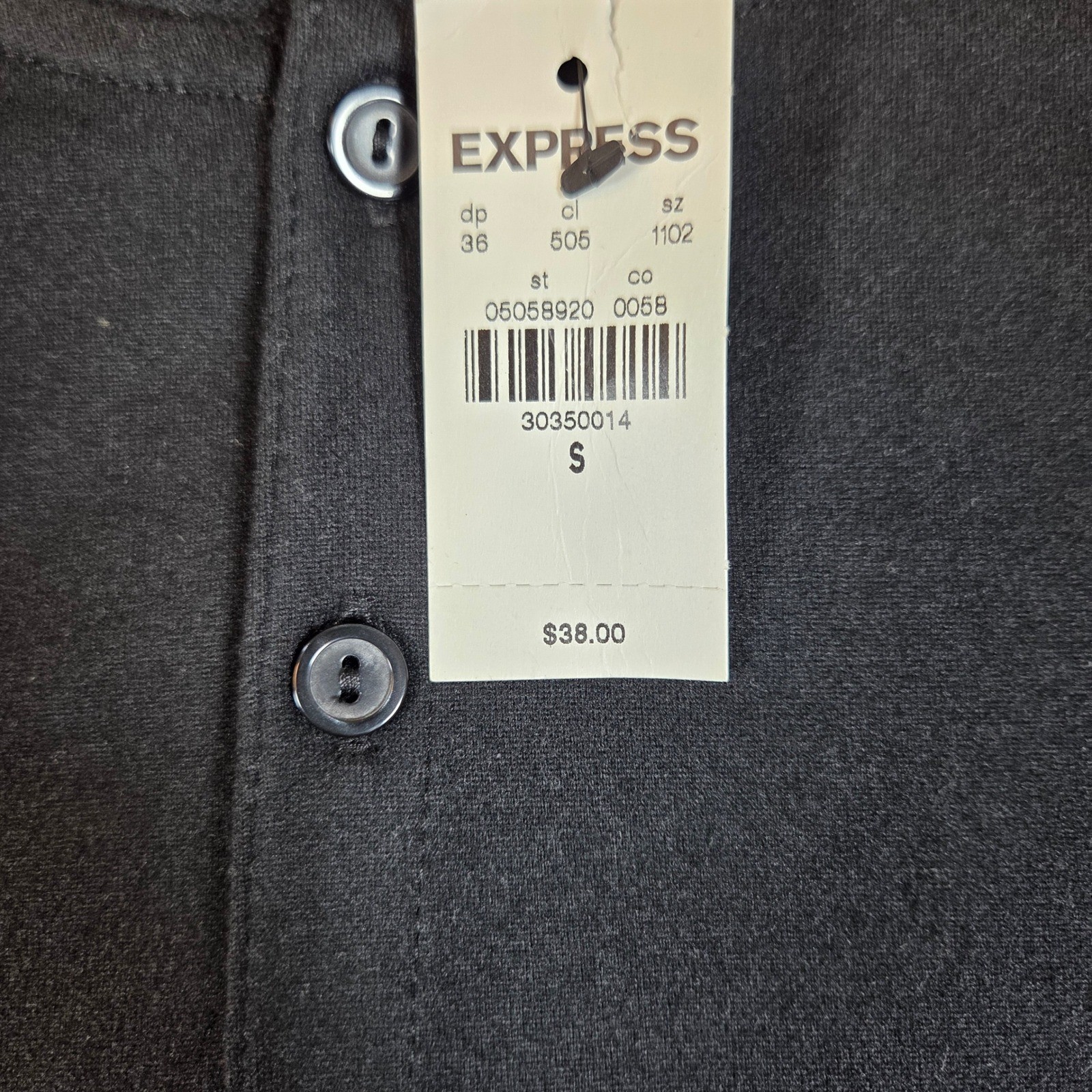 Express Mens Sleepwear Henley Shirt Long Sleeve Black Small 05058920 0058 NWT