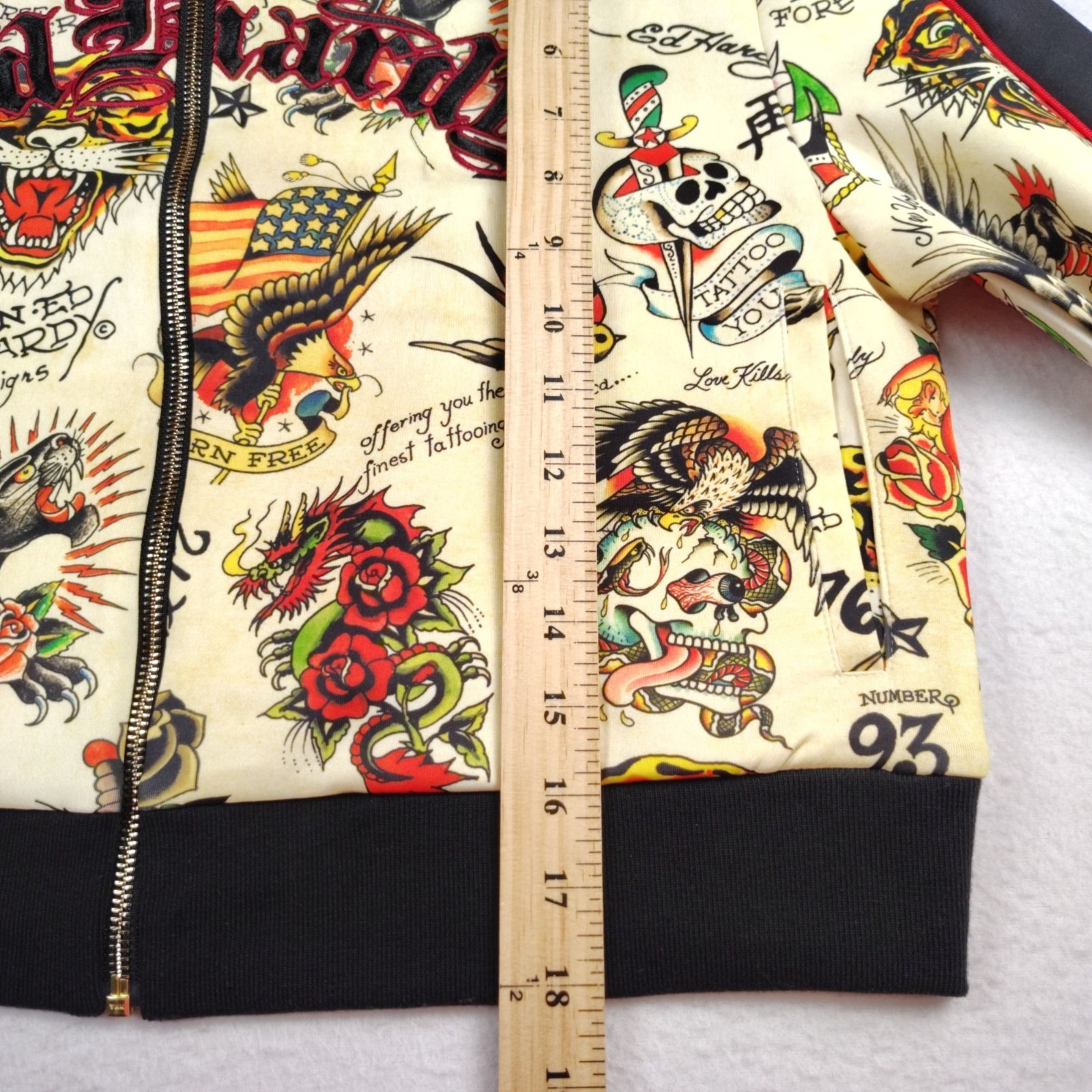 как выглядит NEW Ed Hardy Cropped Track Jacket Womens XL Shrunken Flashboard Multi фото