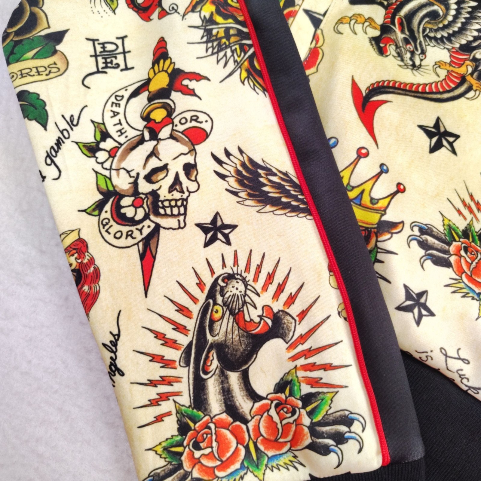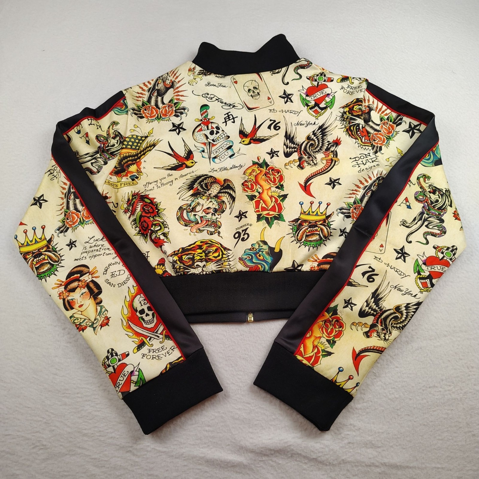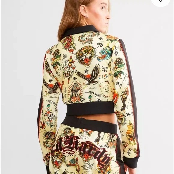 NEW Ed Hardy Cropped Track Jacket Womens XL Shrunken Flashboard Multi