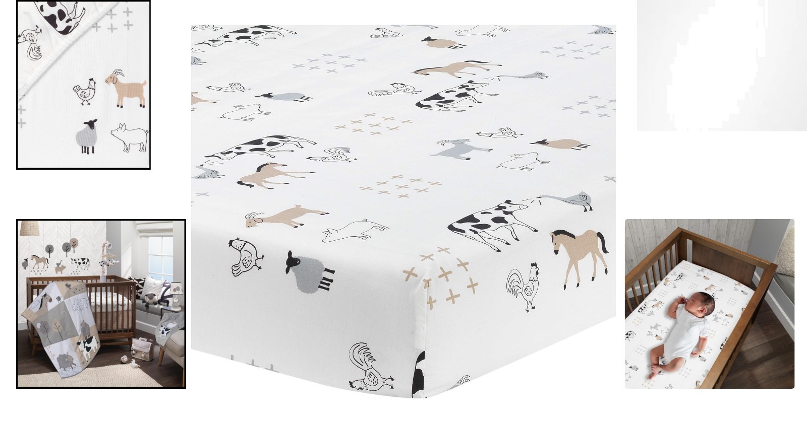 как выглядит Breathable 100 Cotton Fitted Crib Sheet - Baby Farm Animals, 28x52 Inch фото