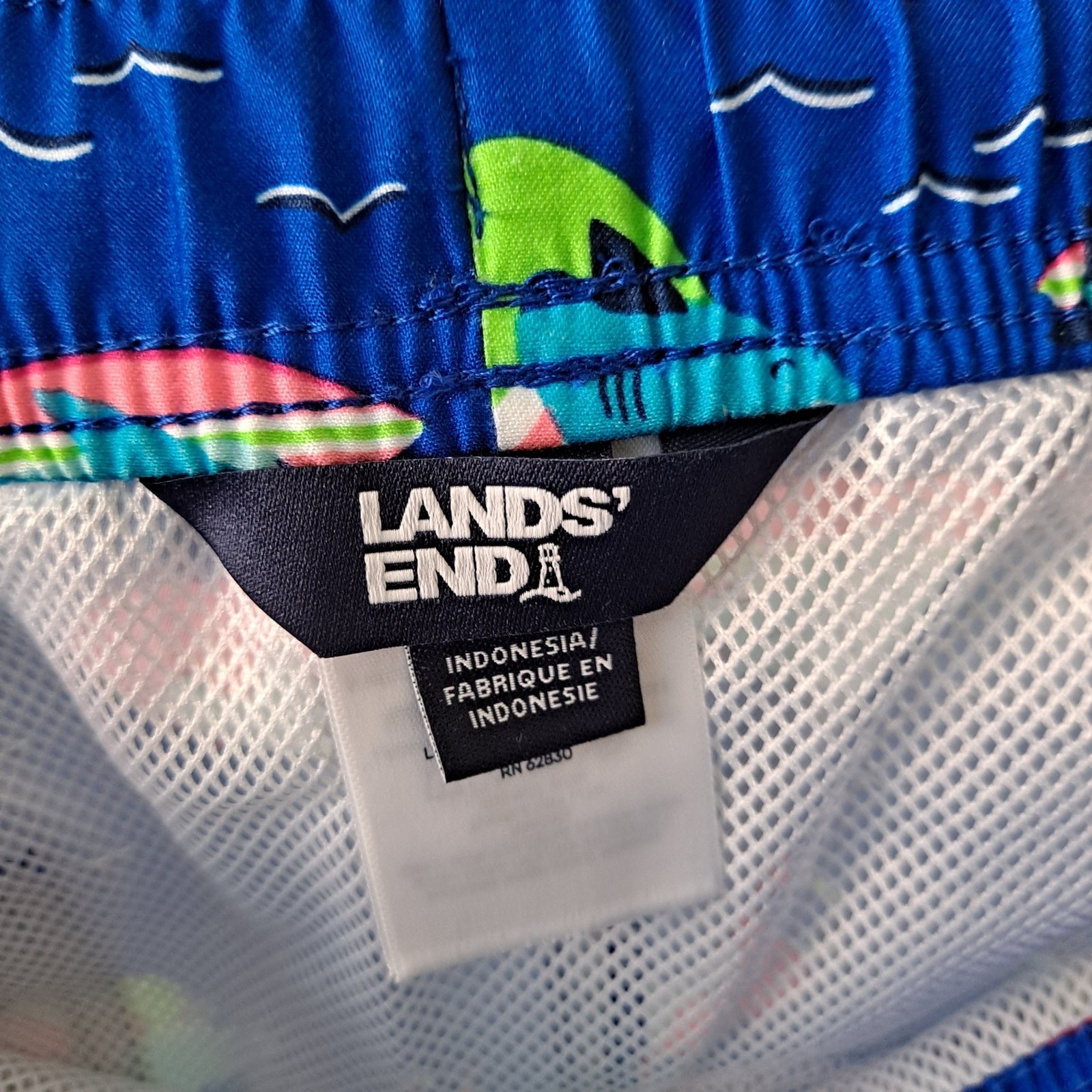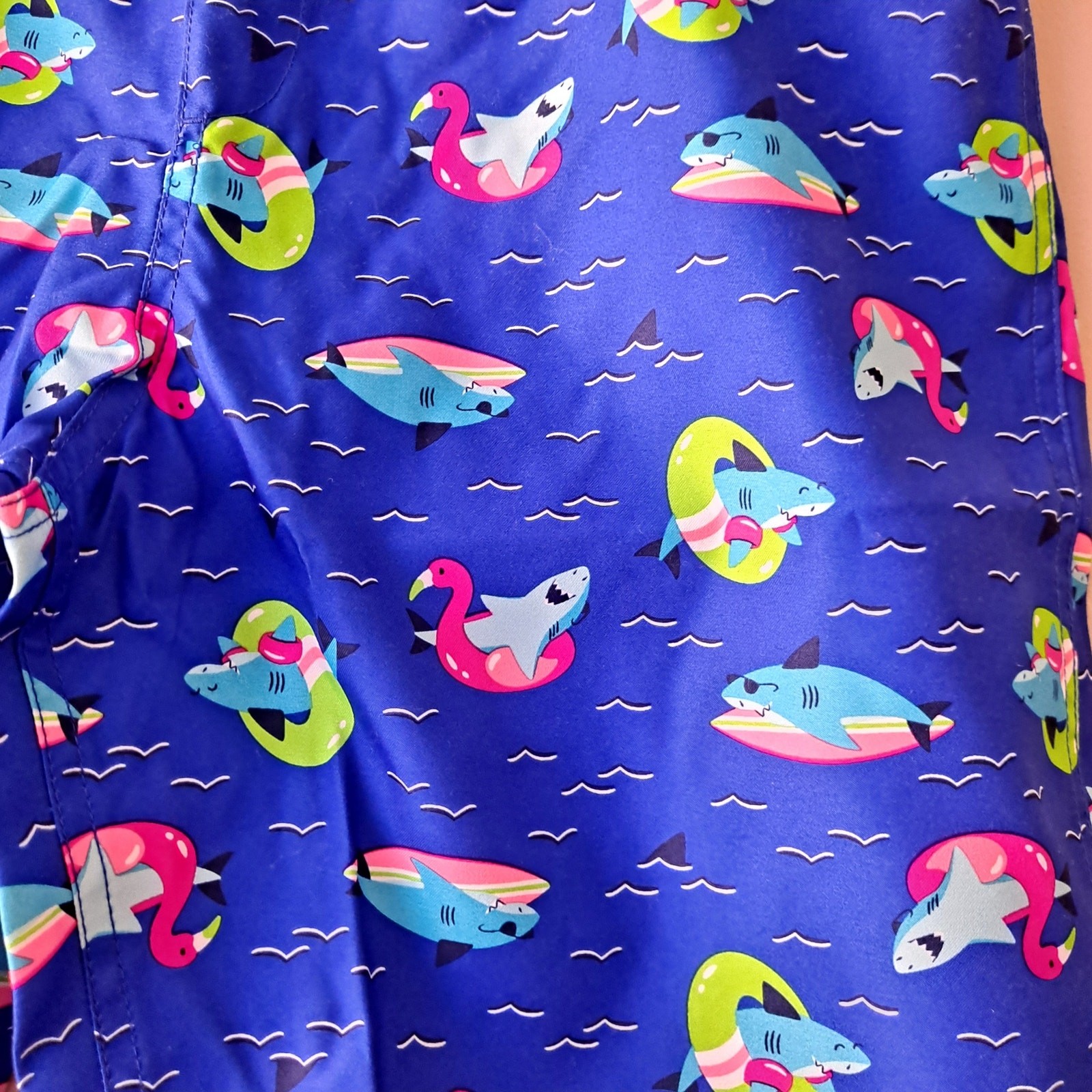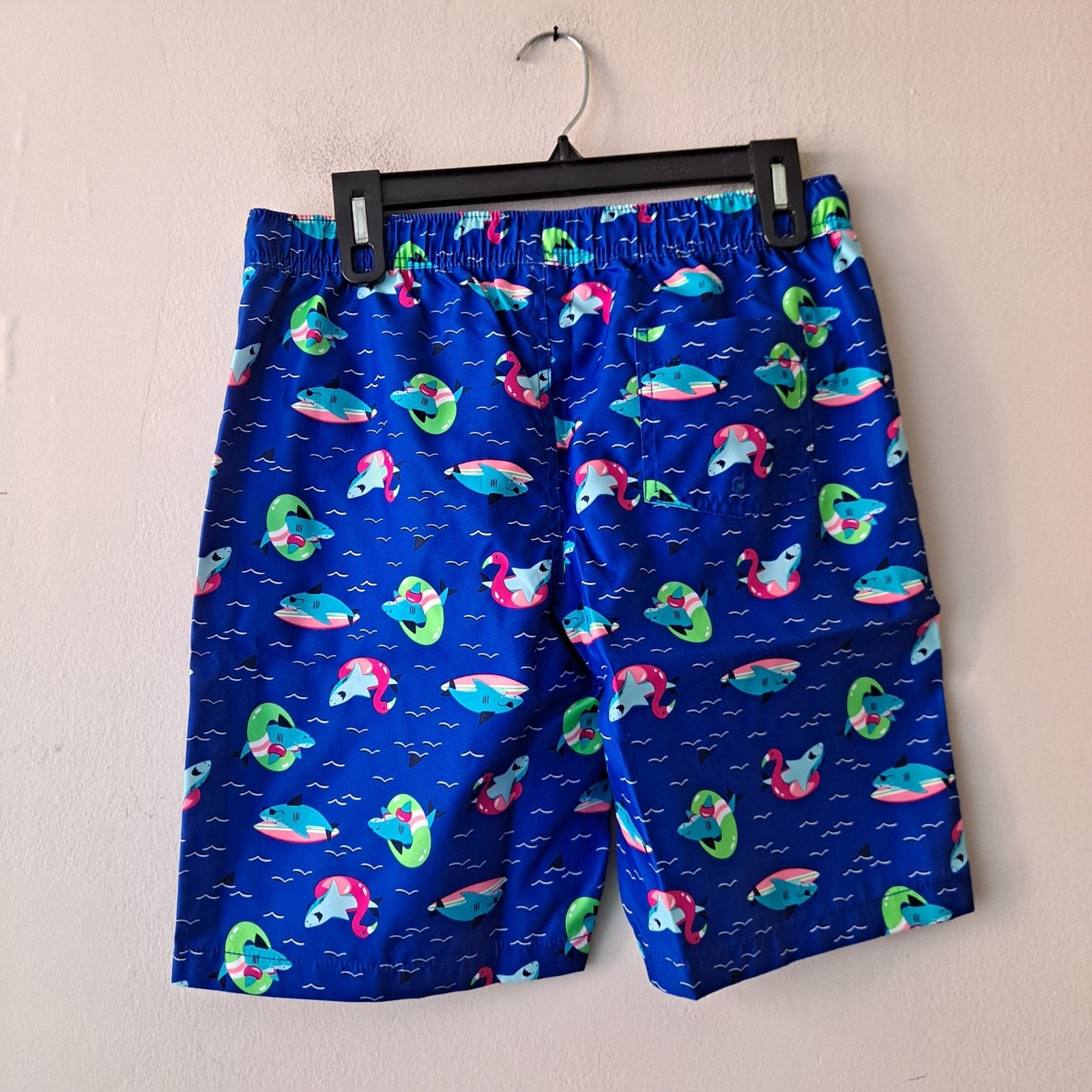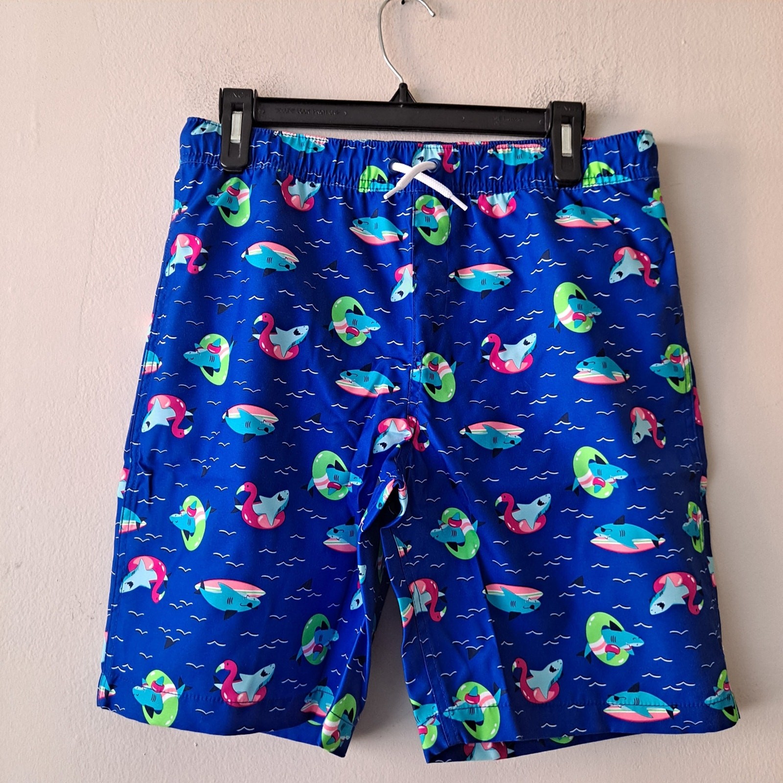 NWT Lands' End Funny Shark Swim Trunks Duck Surfboard Neon Blue Boy Size XLH
