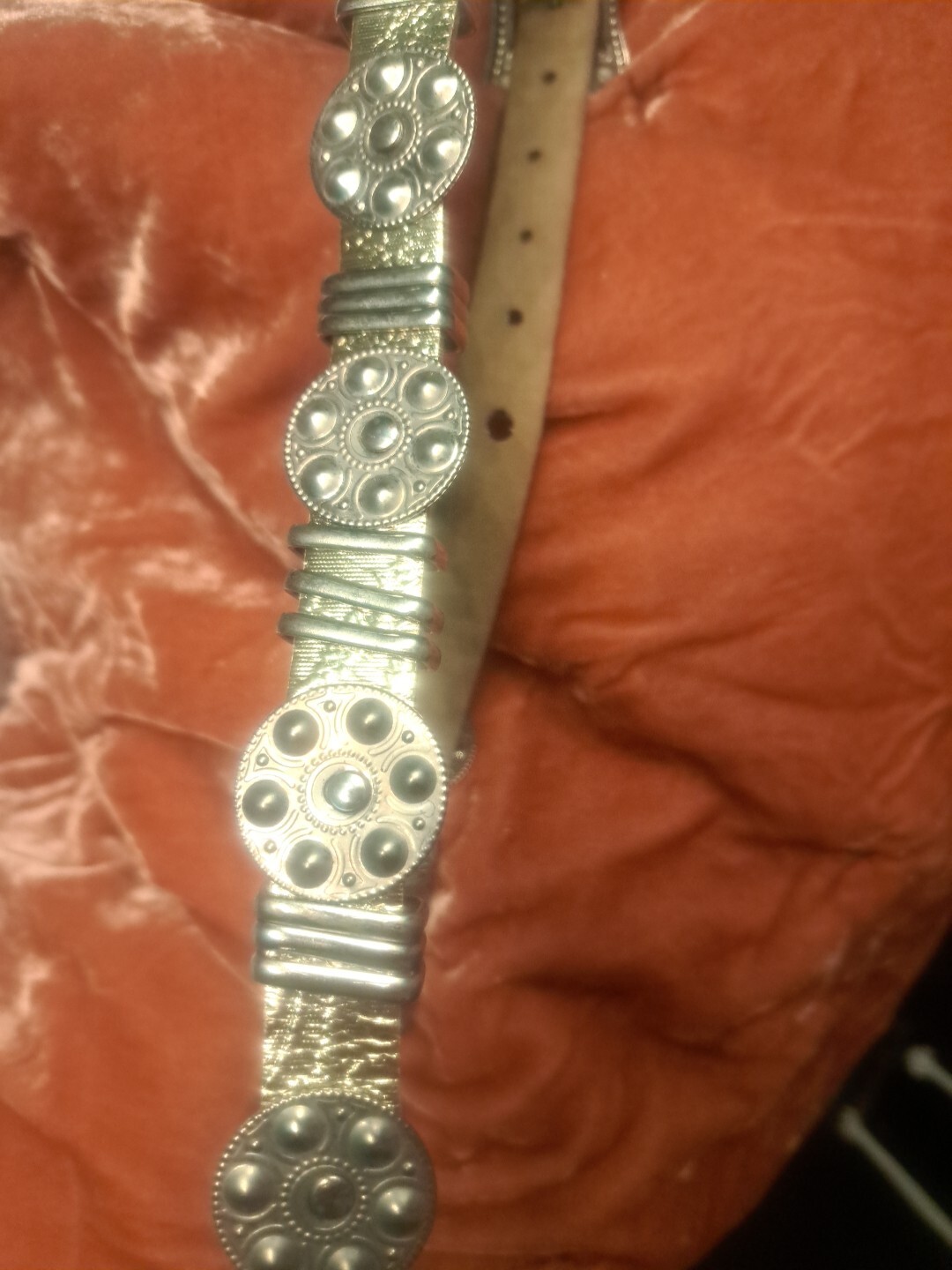 как выглядит Vintage 80s Womens Silver Bull Horse Shoe Studded Western Belt Fits 28"TO 33" фото