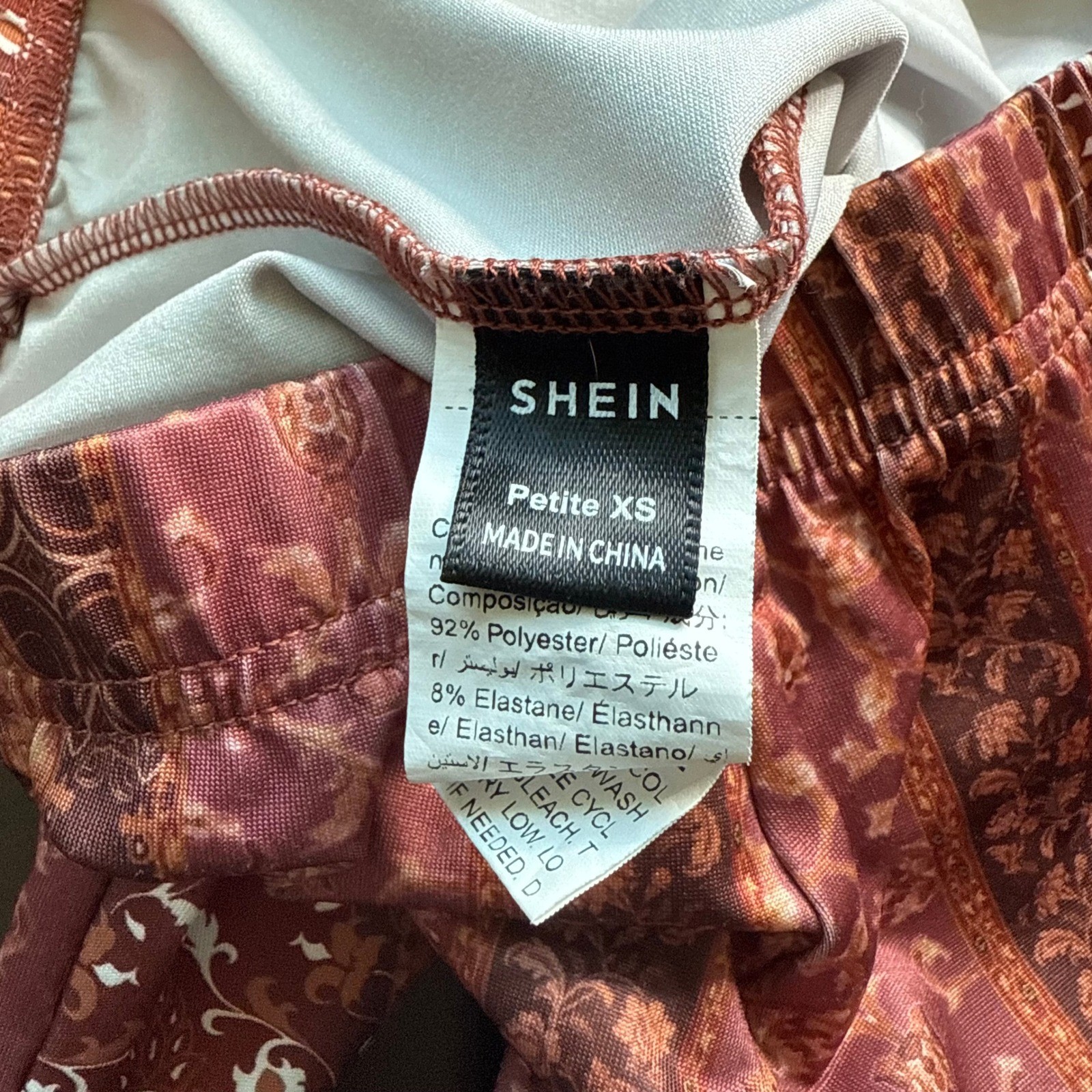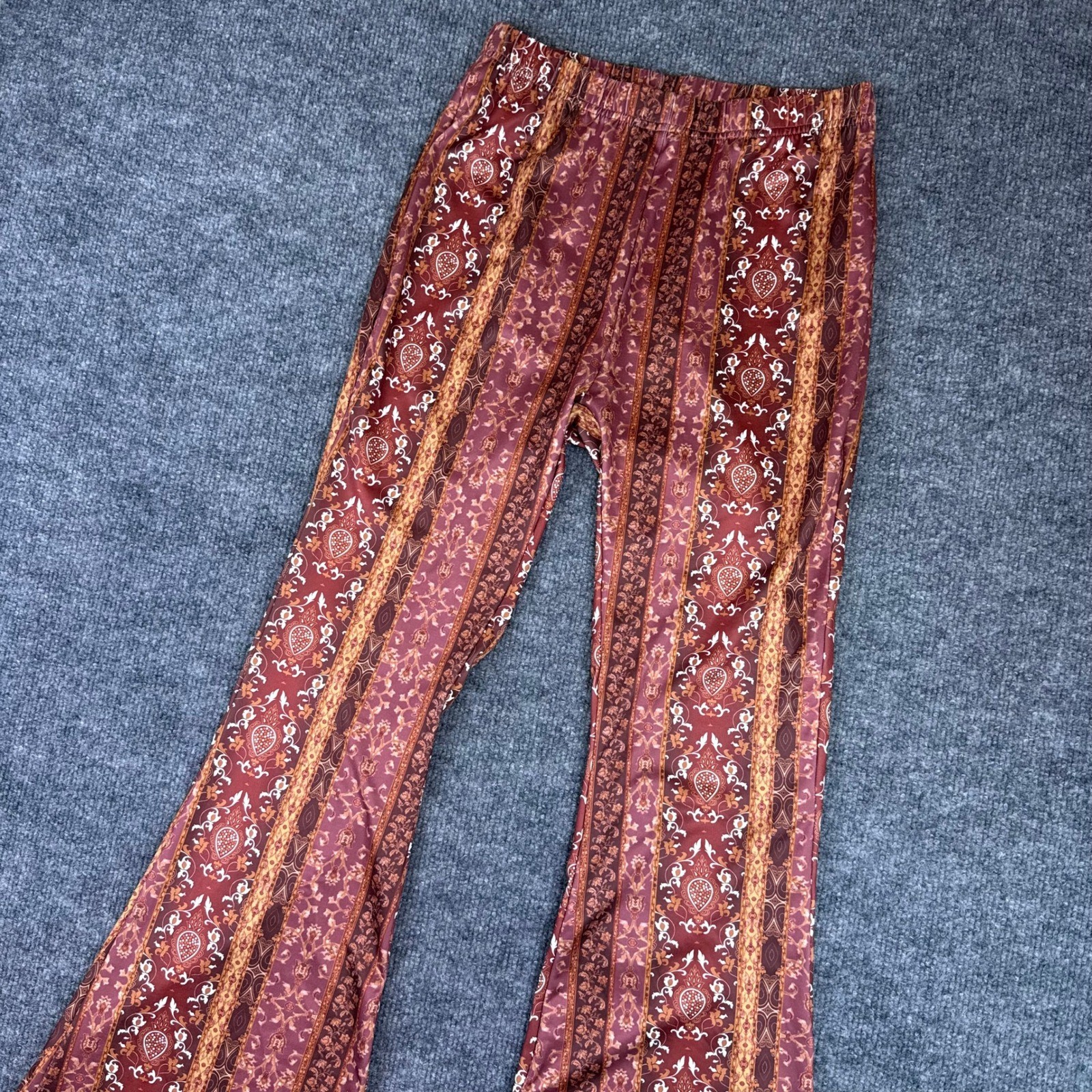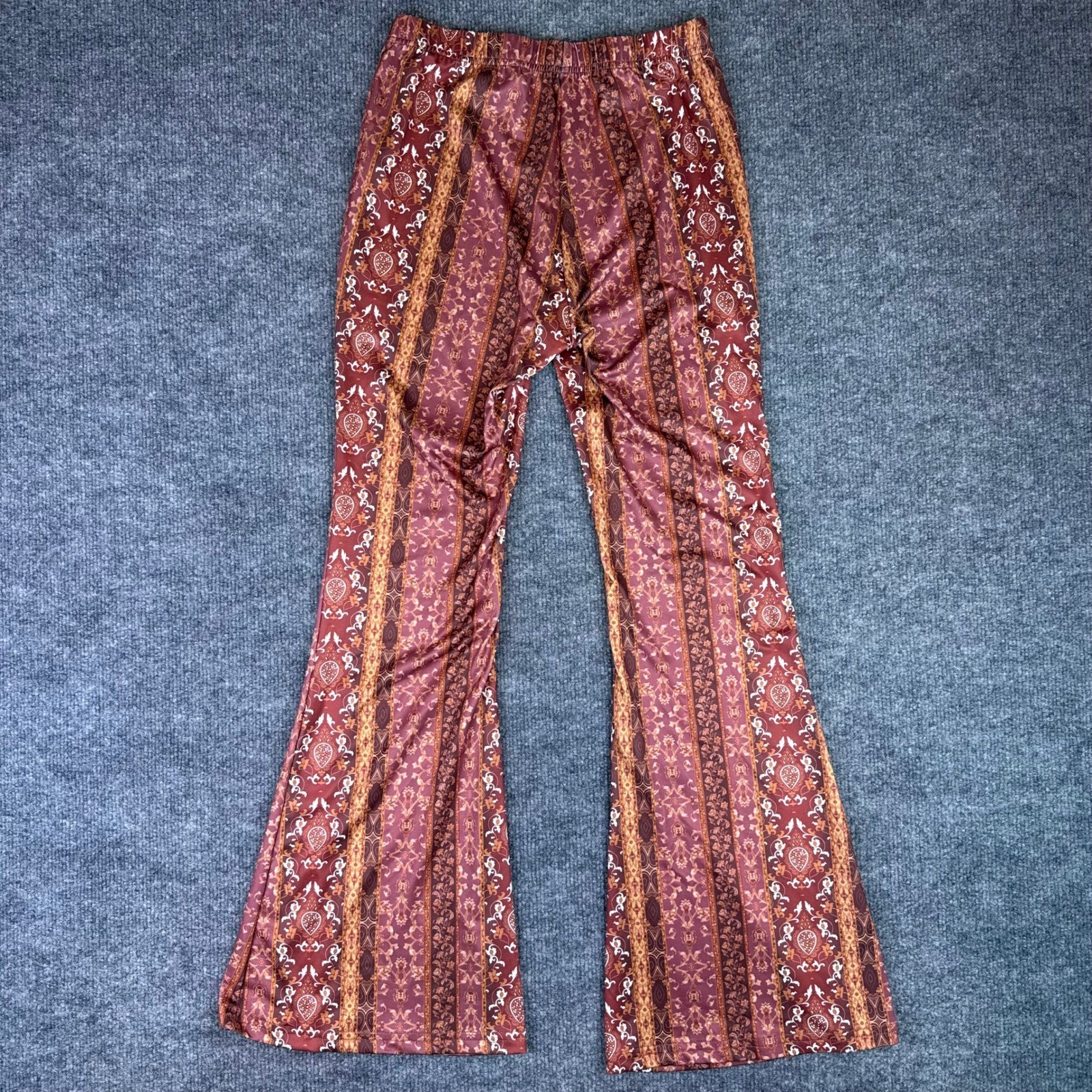 SHEIN Paisley Stripe Flare Pants Burgundy Orange Boho Bell Bottoms High Waist XS