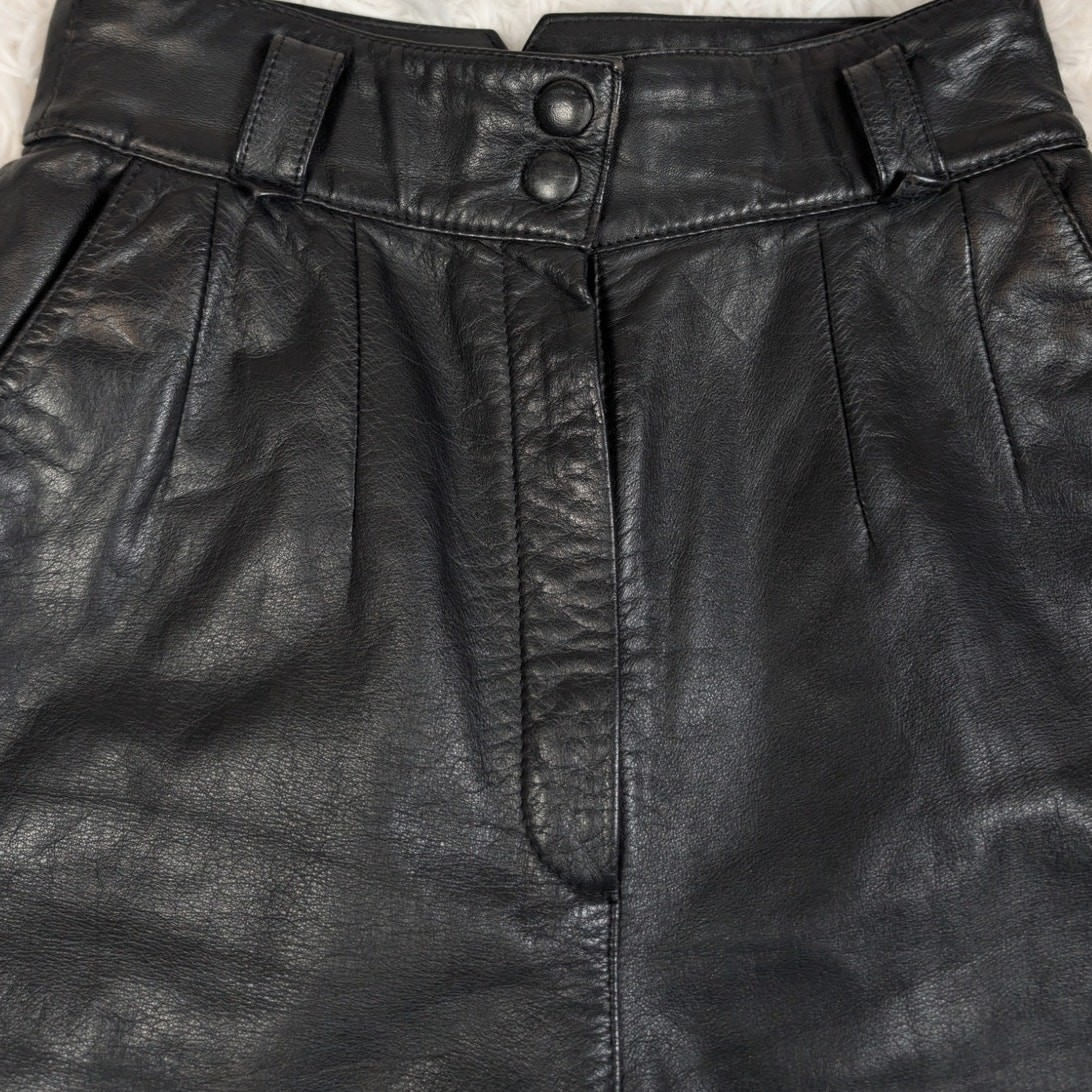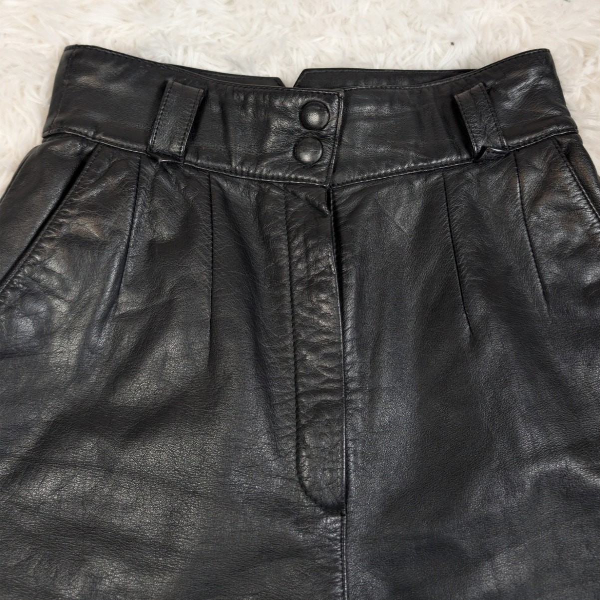 Vintage 1980s Black Leather High Waisted Shorts Pleated Lined