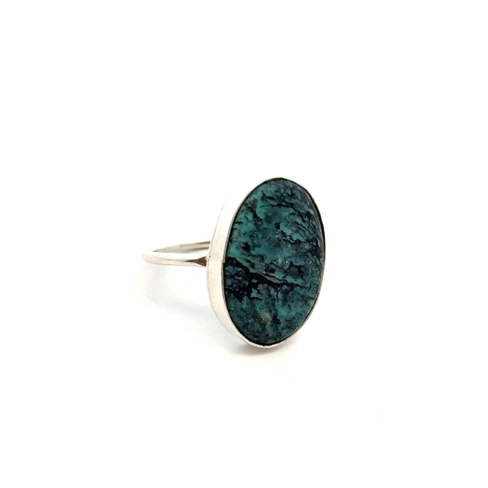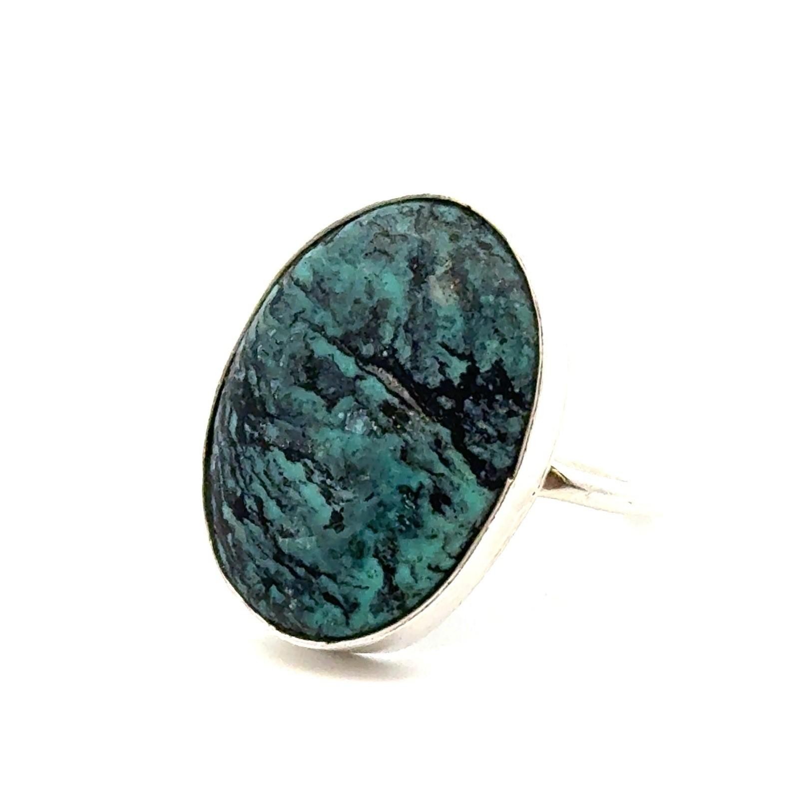 .925 Sterling Silver Oval Turquoise Ring, Size - 8, 4.4g