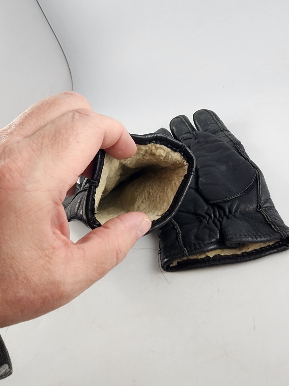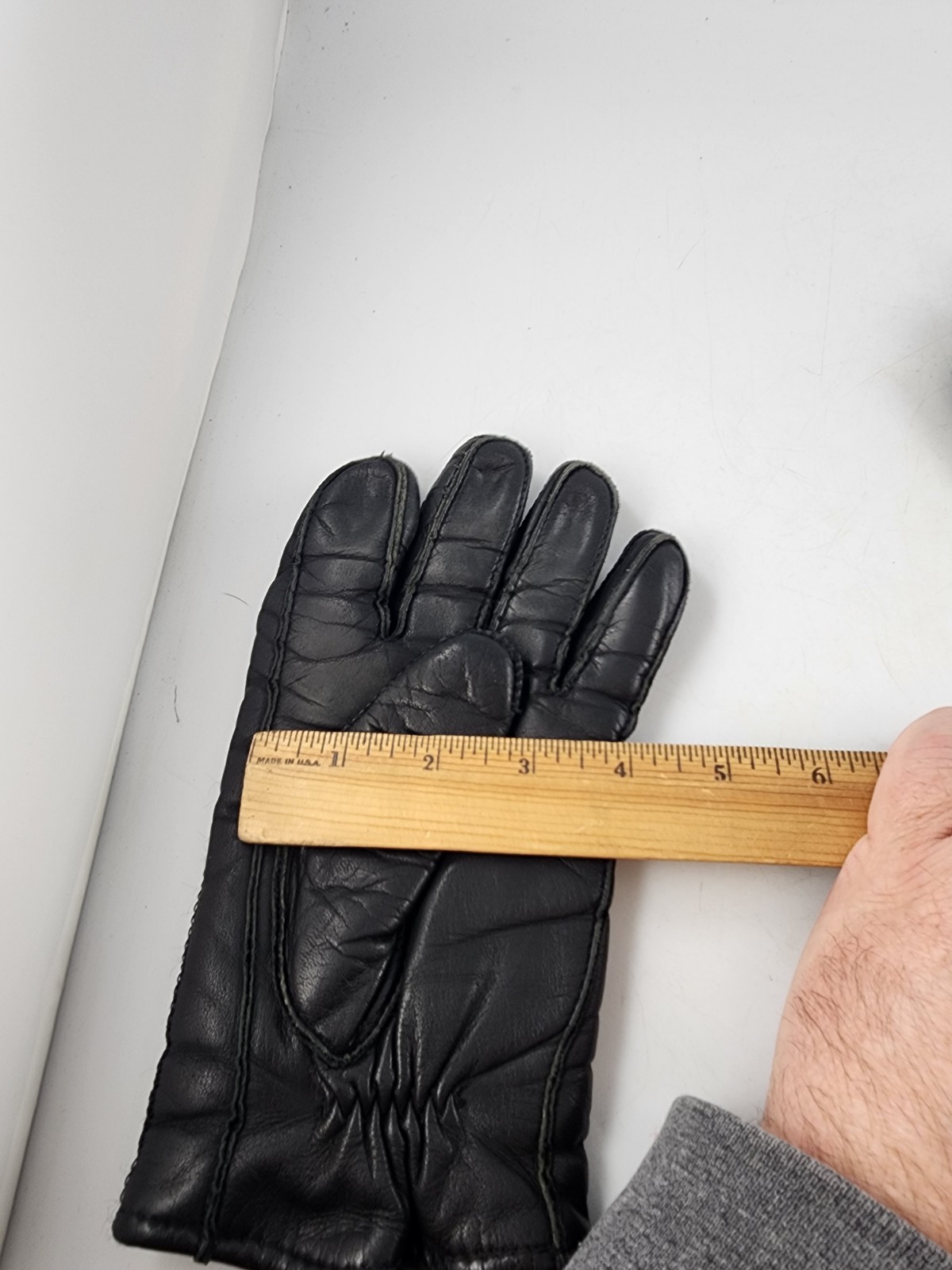 как выглядит Vintage Black Leather Gloves Lined Size M 9 - 9-1/2 фото