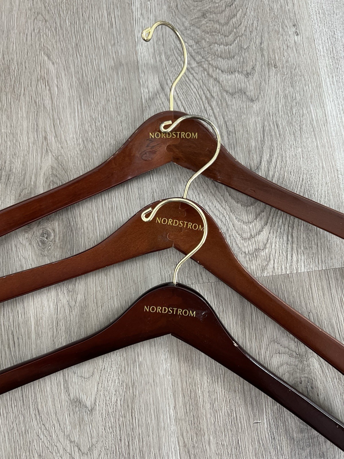 как выглядит 6 Dark Wooden Wood Nordstrom Clothing Hangers 3 Pants 2 Shirt / Jacket фото