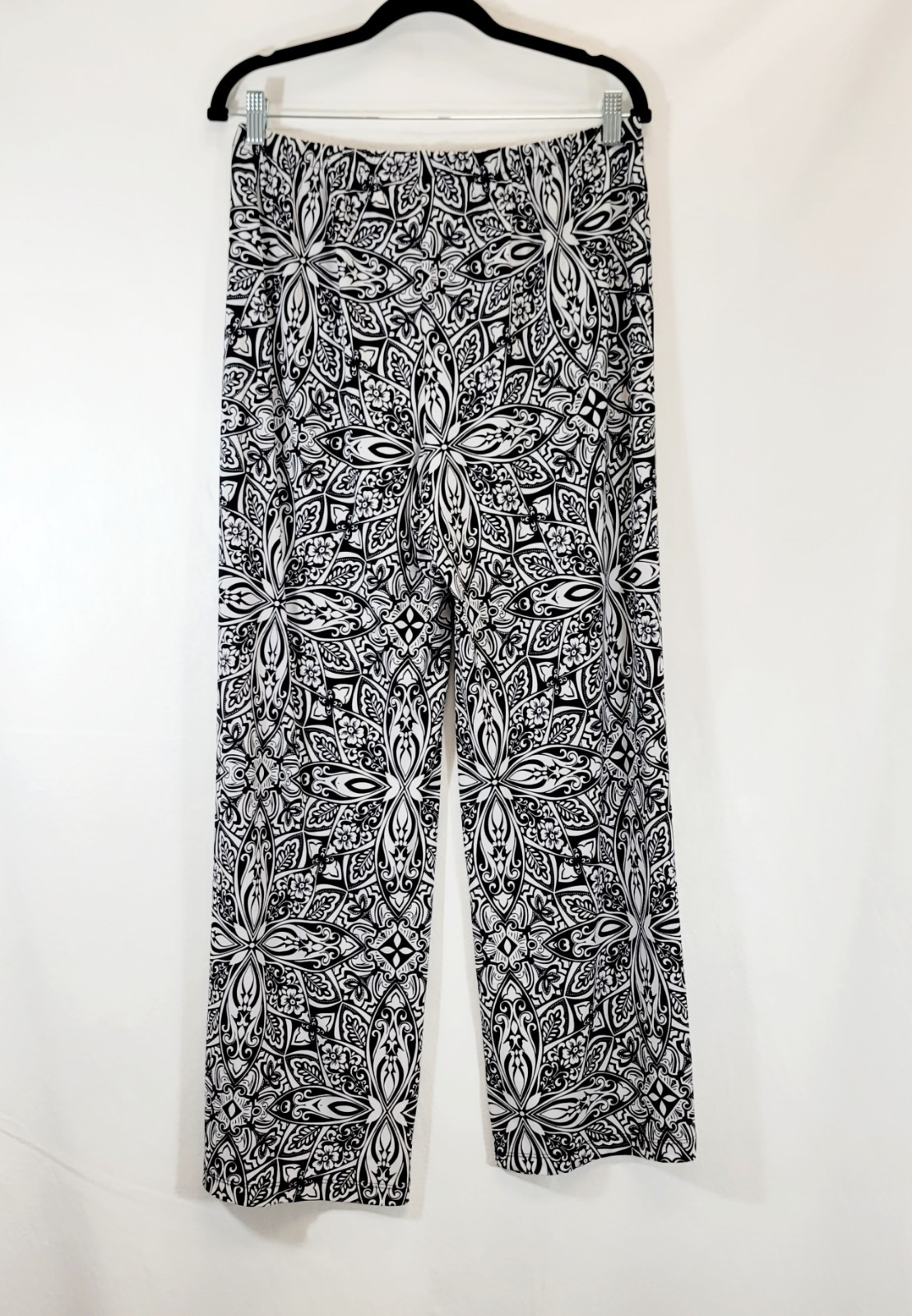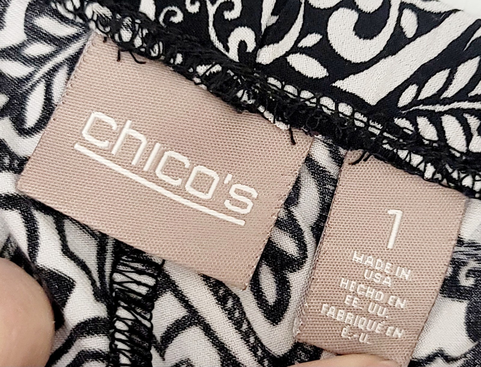 Chico's Traveler's Pull On Pants Black/White Floral - SZ 1 Med 8