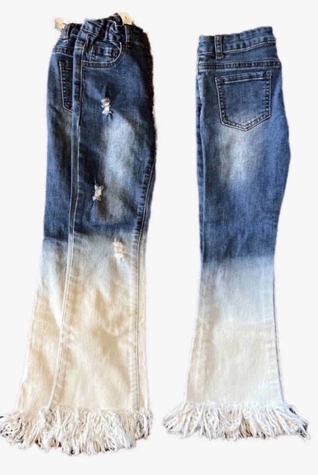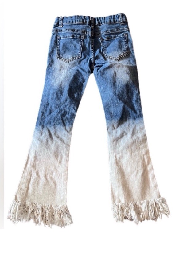 ML Kids Boho Jeans Girls Size 6-7 Flare Bell bottoms Distressed Adjustable Waist
