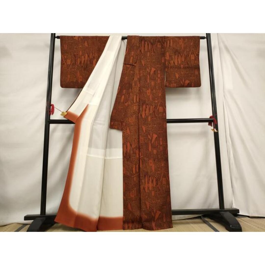как выглядит Heiwaya Kimono Fine Pattern Landscape Onishibo Crepe Pure Silk Used Japan фото