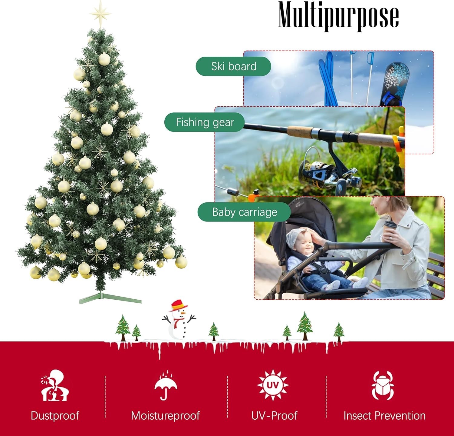 7.5 ft Christmas Tree Storage Bag - Durable, Easy-Storage Red Tote with Zippers