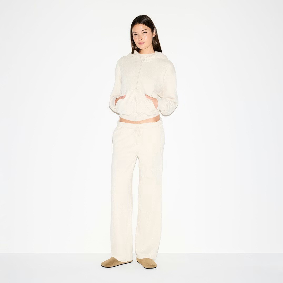 Skims Cotton Fleece Classic Straight Leg Pant in Oatmeal Heather, Small New