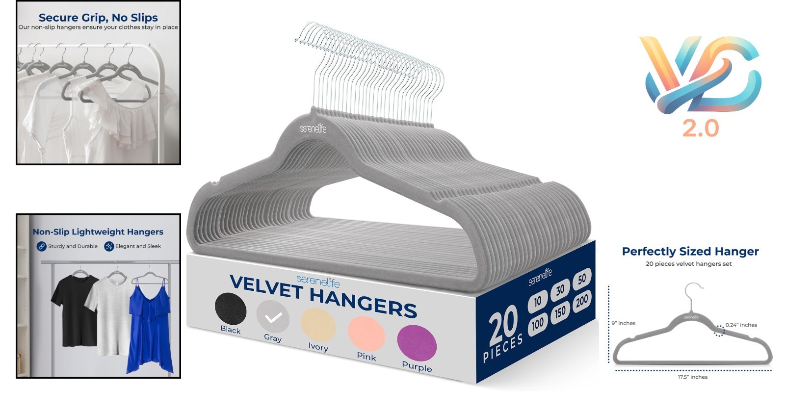 20 Pack Velvet Hangers Non-Slip Slim Space Saving Heavy Duty Closet Organization