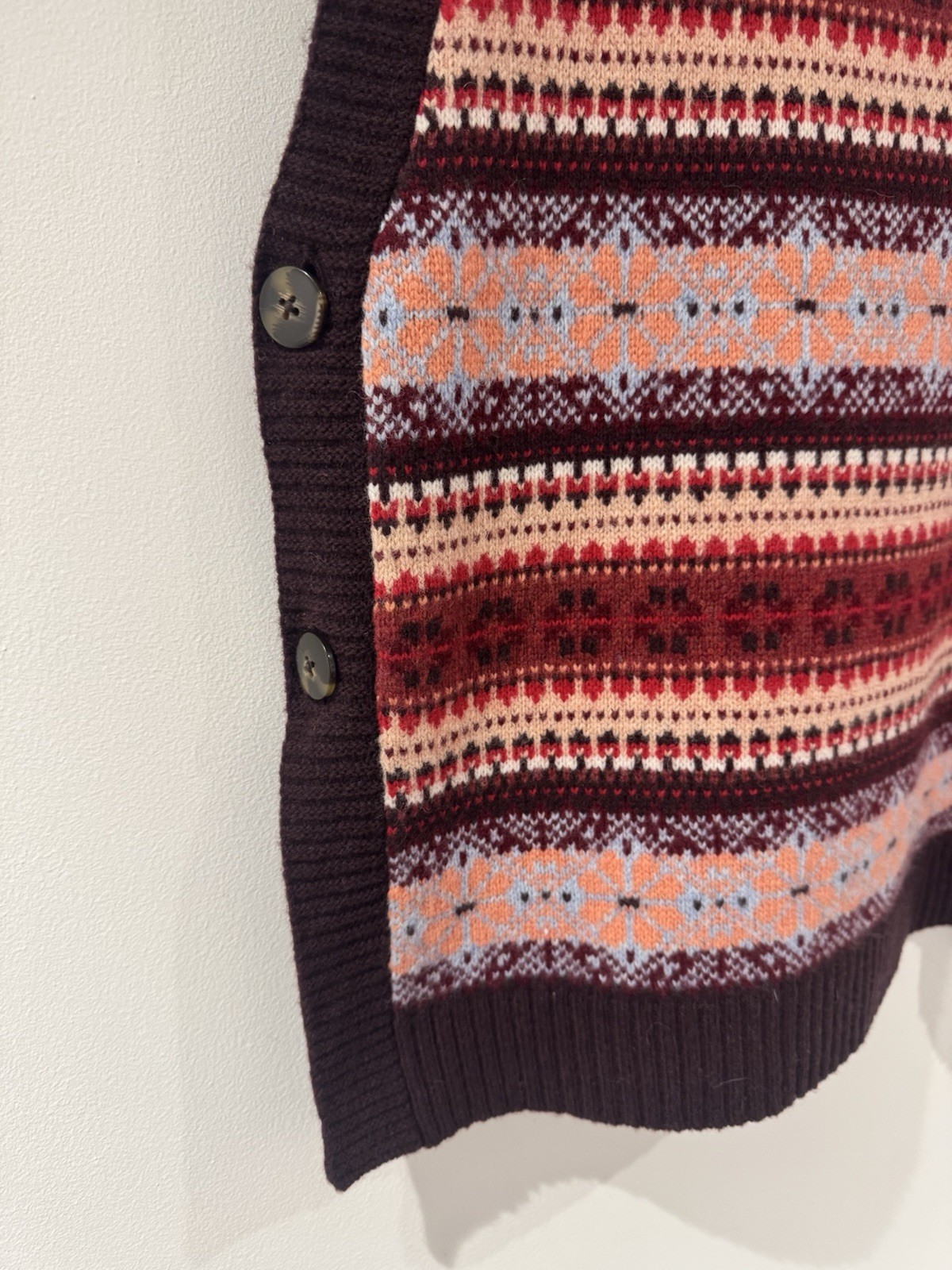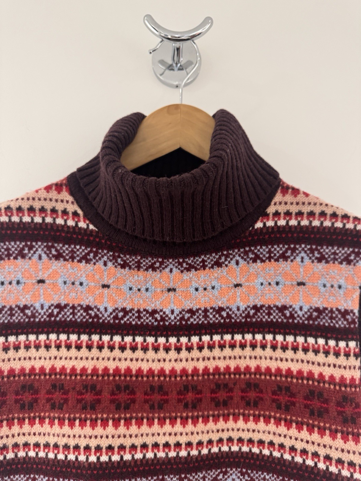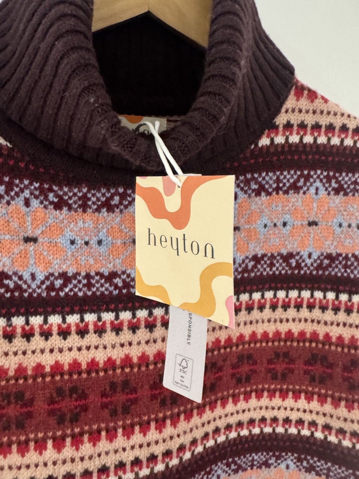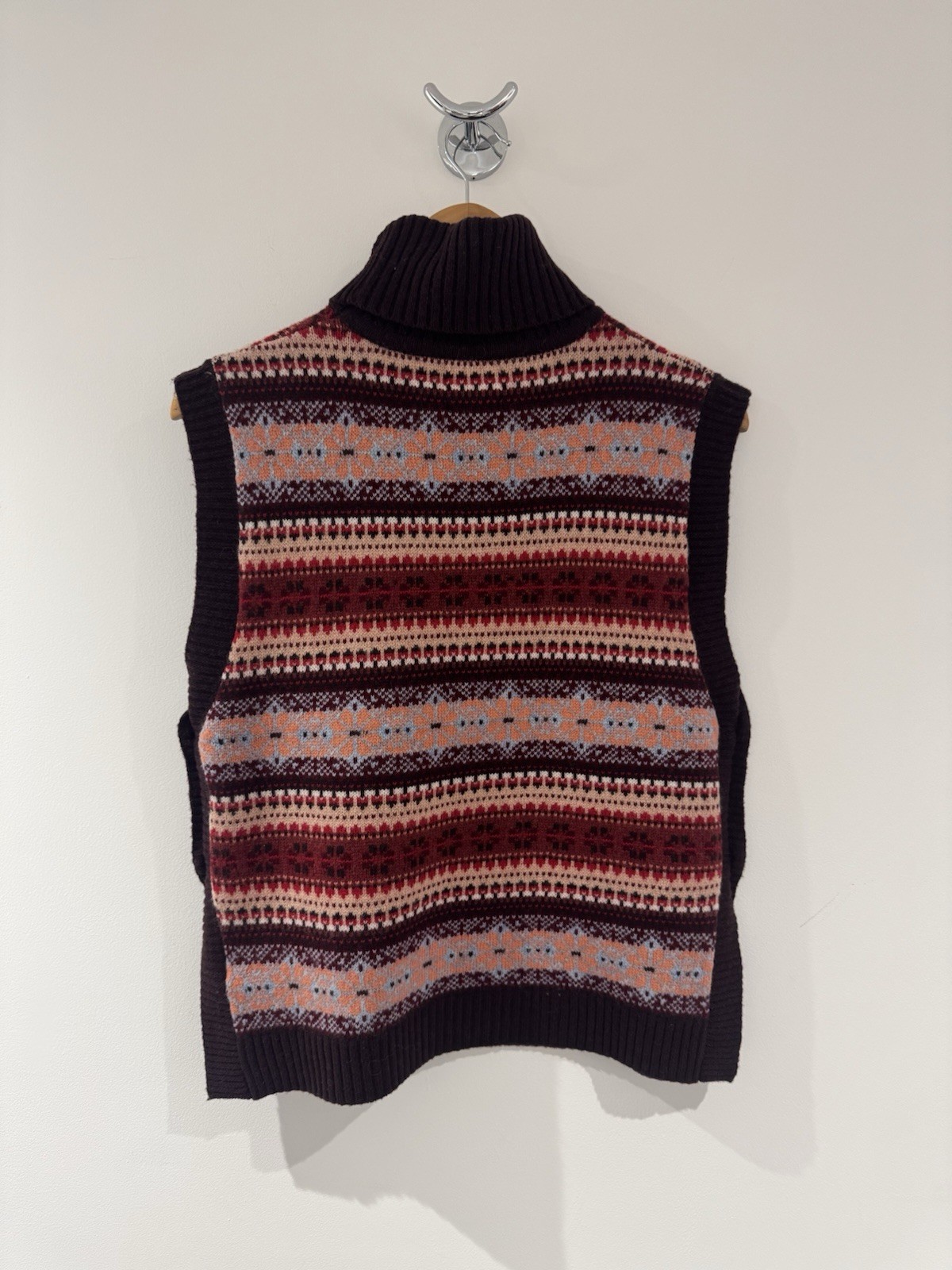 Heyton Fairisle Lambswool Blend Sleeveless Knit Jumper Size 10 S Burgundy BNWT