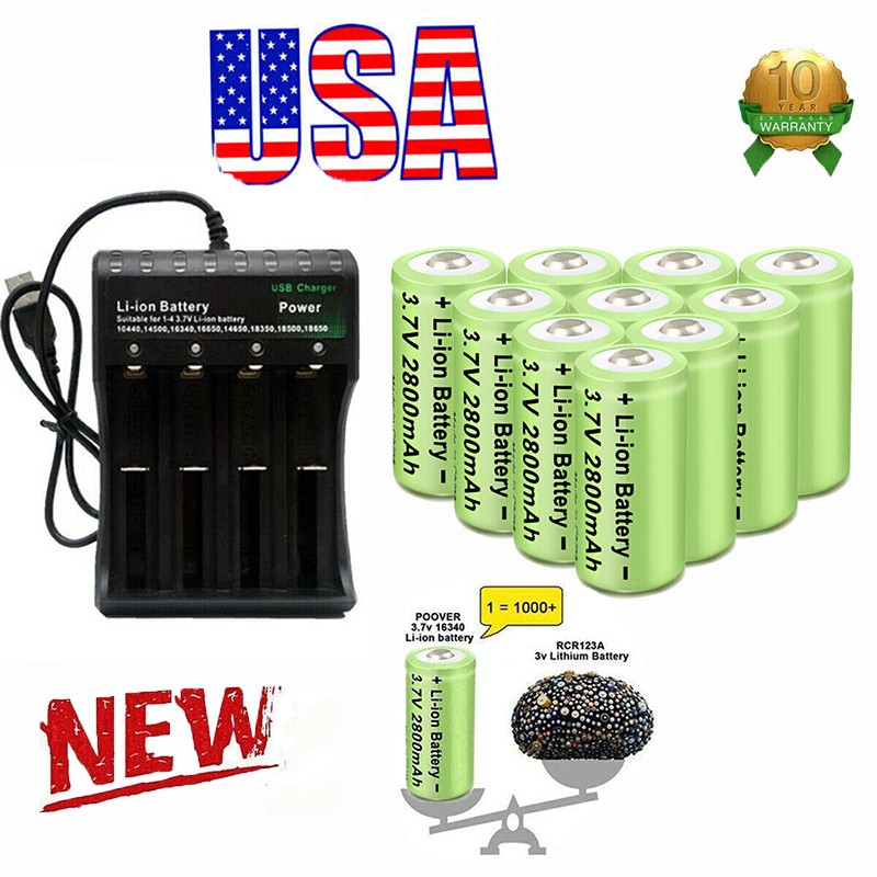 2800mAh Batteries CR123A 16340 Rechargeable Li-ion Battery / Smart Charger Lot