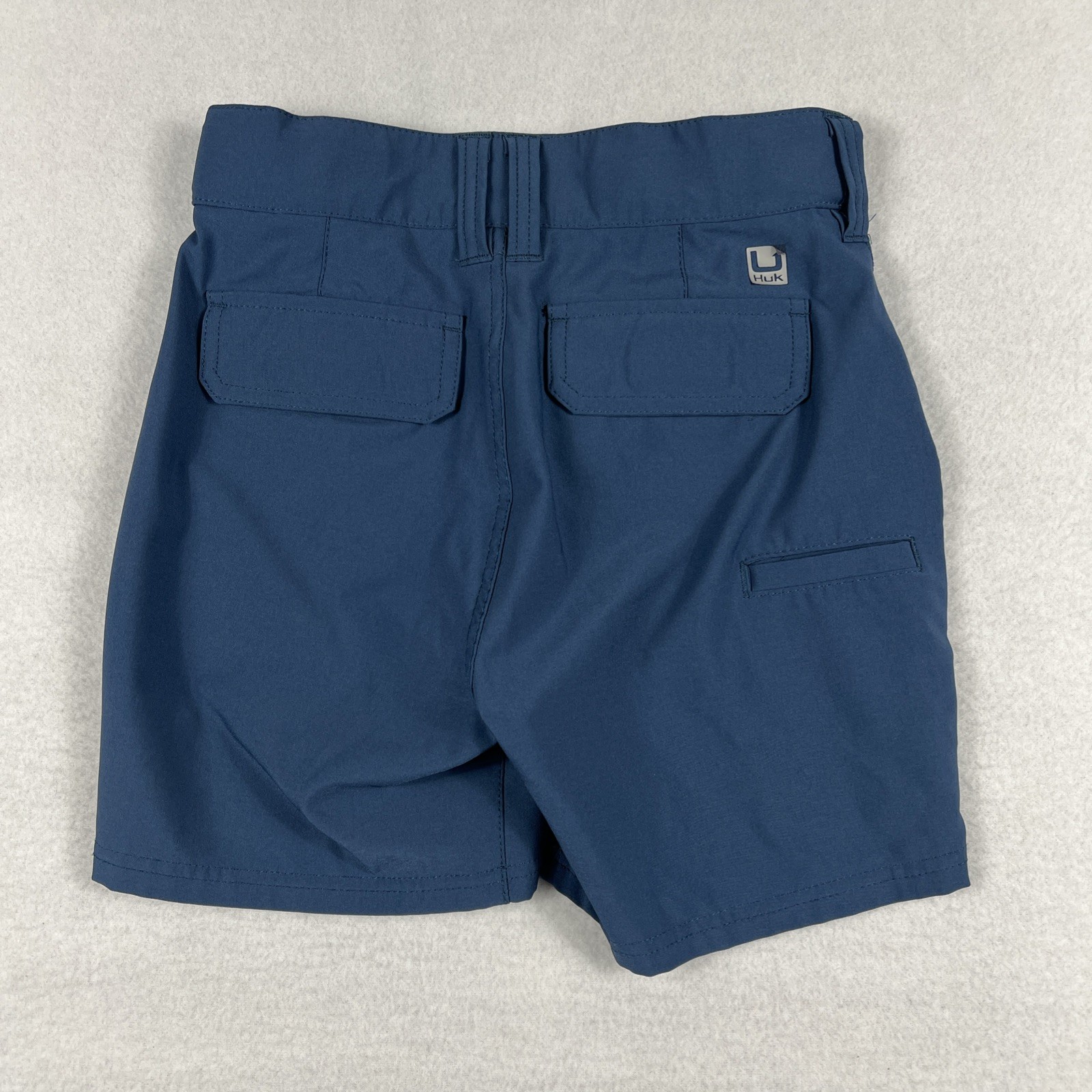 Huk Shorts Boys Size YM Blue Fishing Outdoor Water Resistant Stretch Waist
