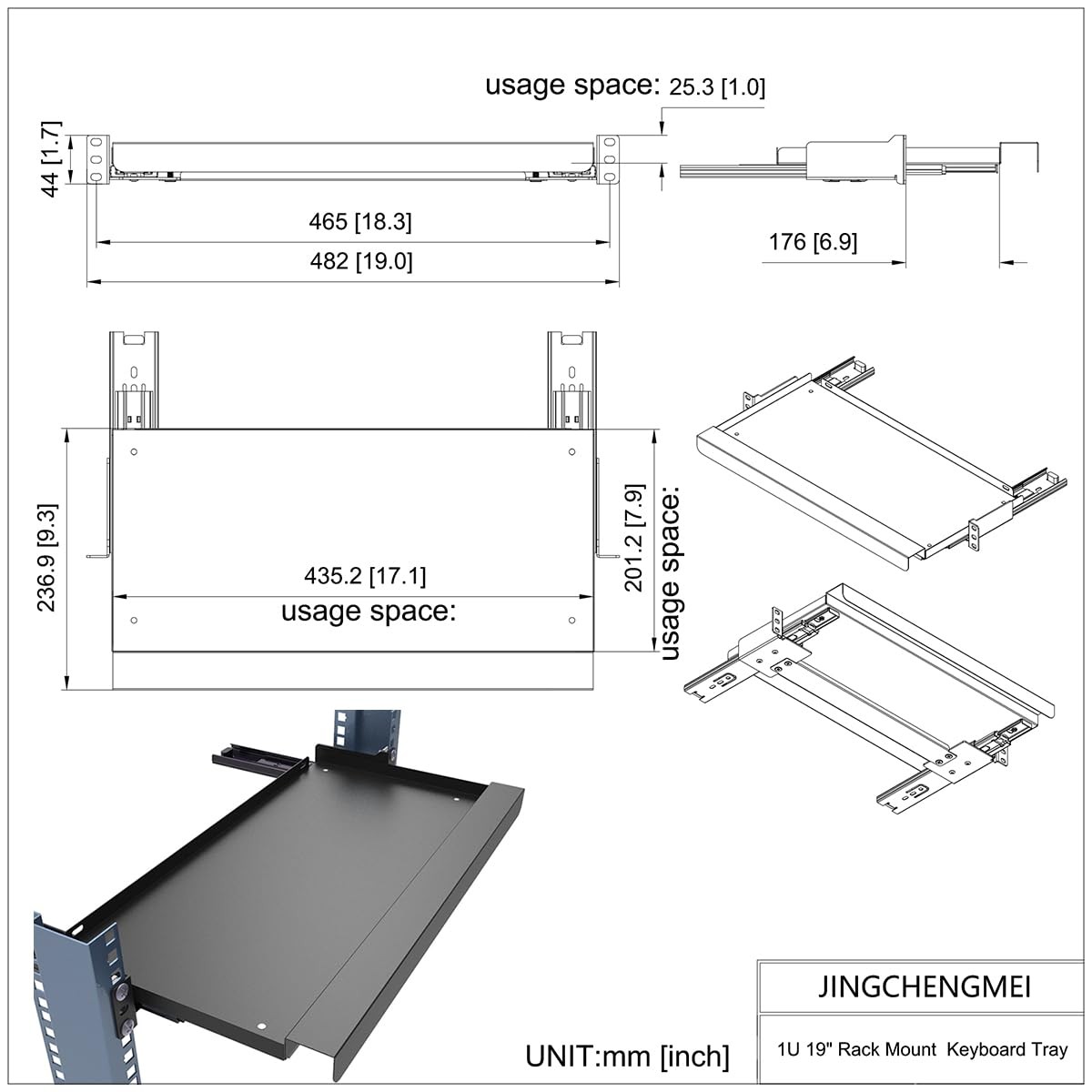 как выглядит 1U Keyboard Tray 8"Deep -Universal 19"Rack Mount Sliding Shelf for Network фото