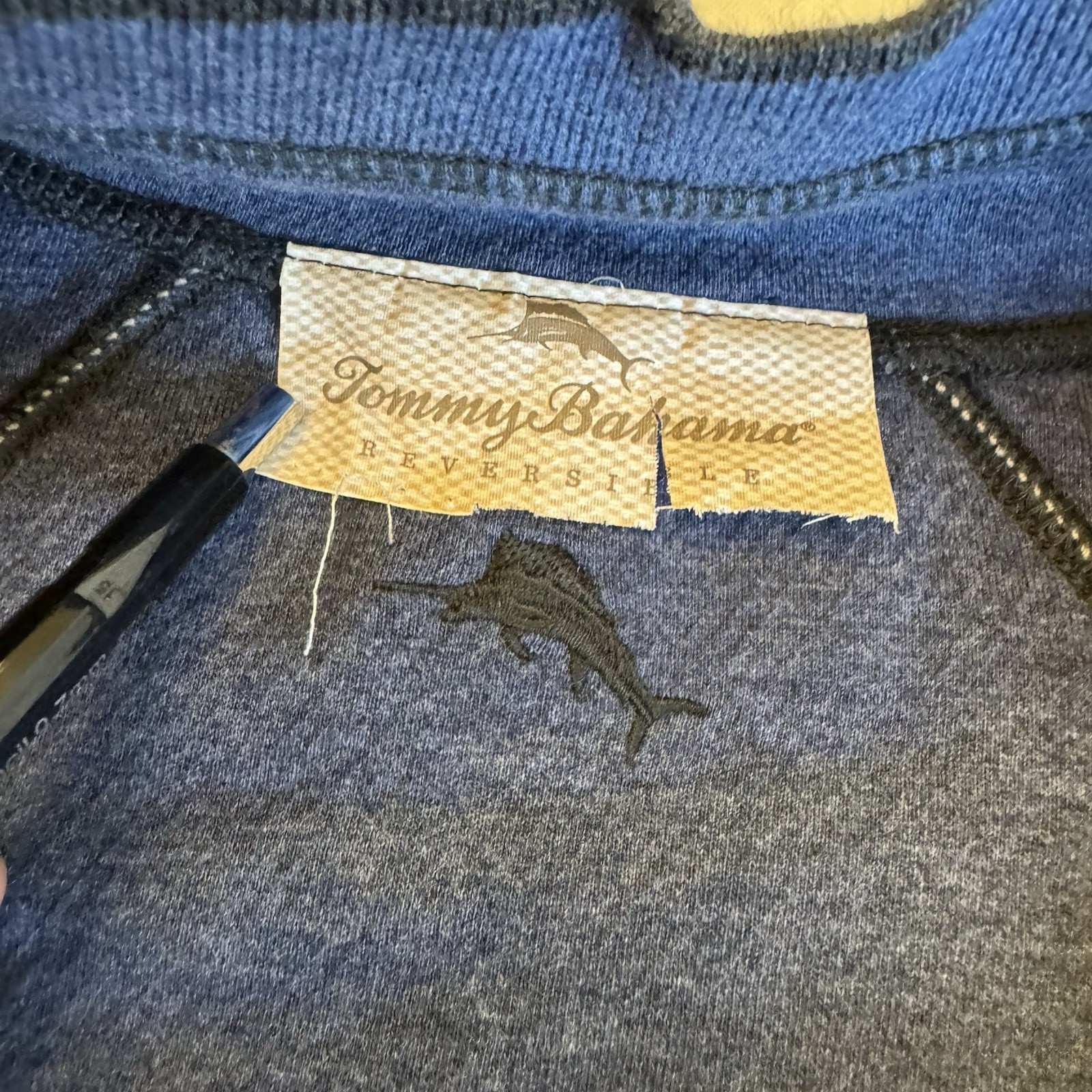 как выглядит Tommy Bahama XL Reversible Golf Sweater 1/4 Zip Pullover Gray Blue Mens фото