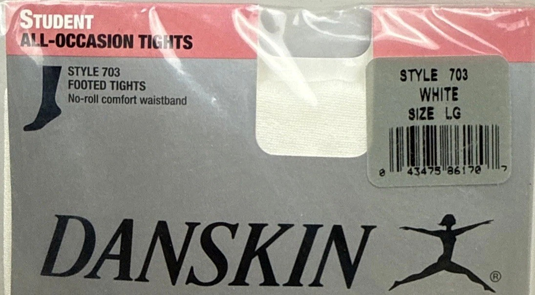 Danskin Student All-Occasion Girls White Footed Tights Style 703 Size LG NEW
