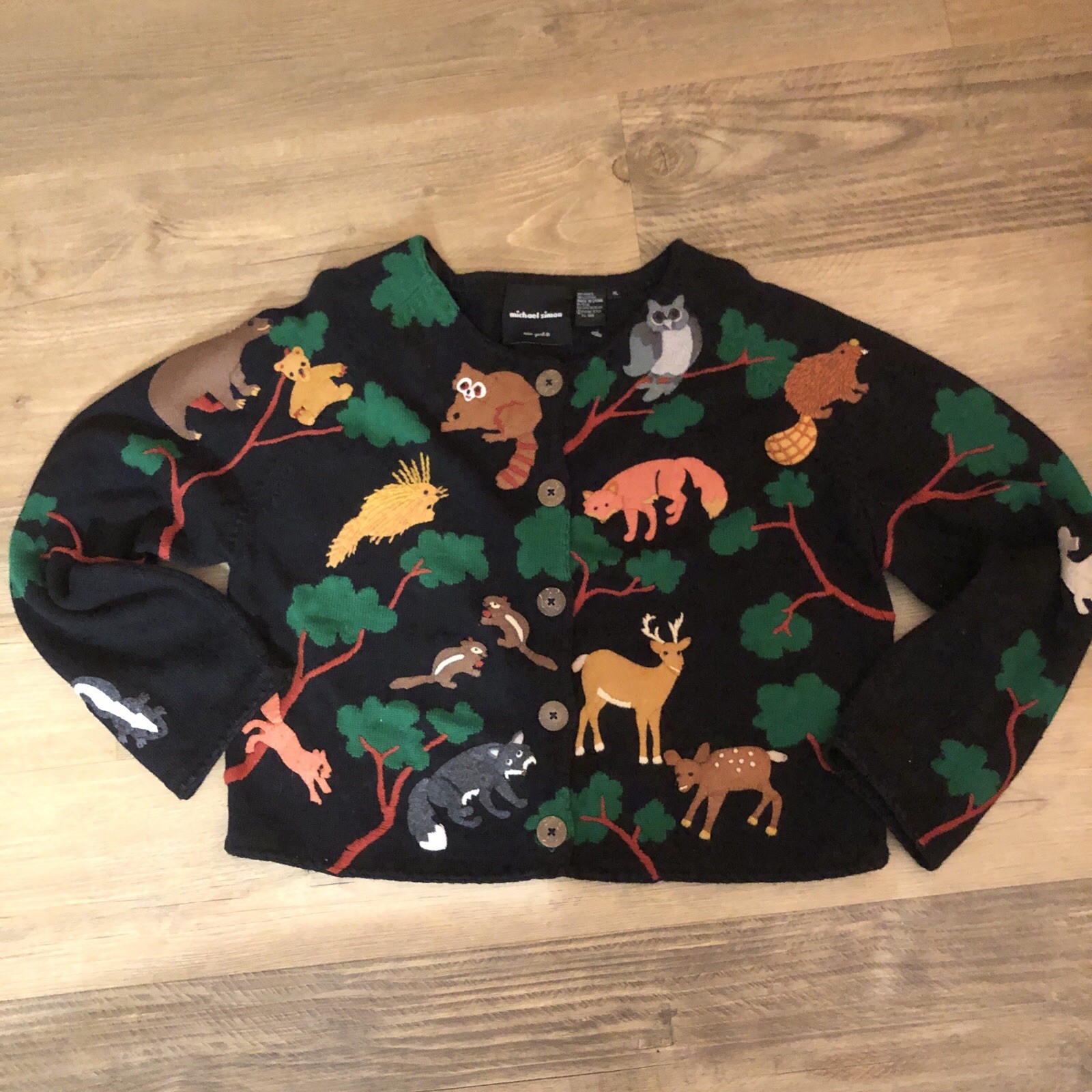 Michael Simon Cardigan Grandpacore XL Cottagecore Woodland Animals 3d RaRE