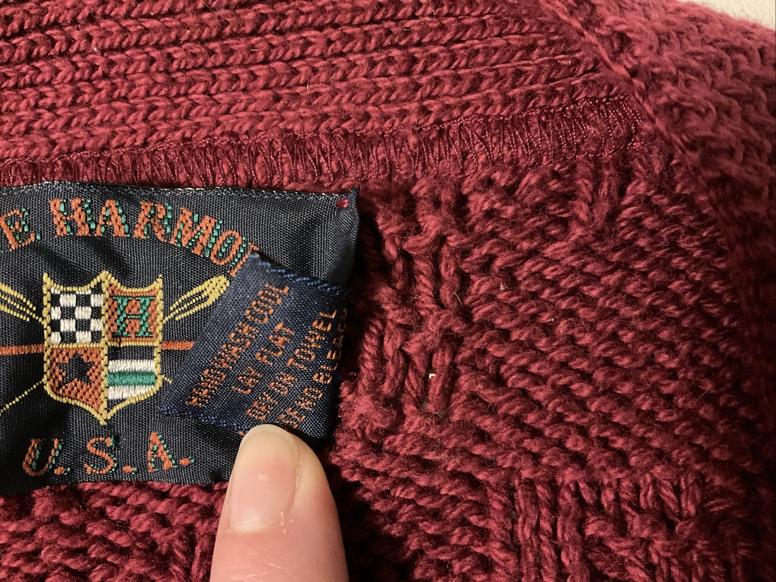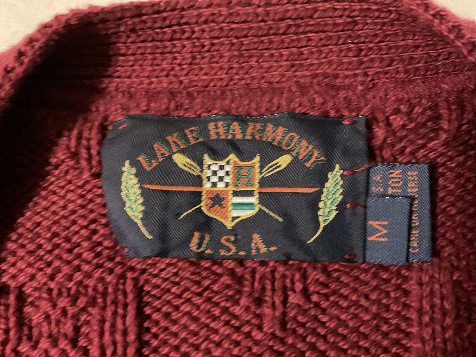 Lake Harmony USA Made Maroon Red Cardigan Sweater Button Up Cotton Mens Medium