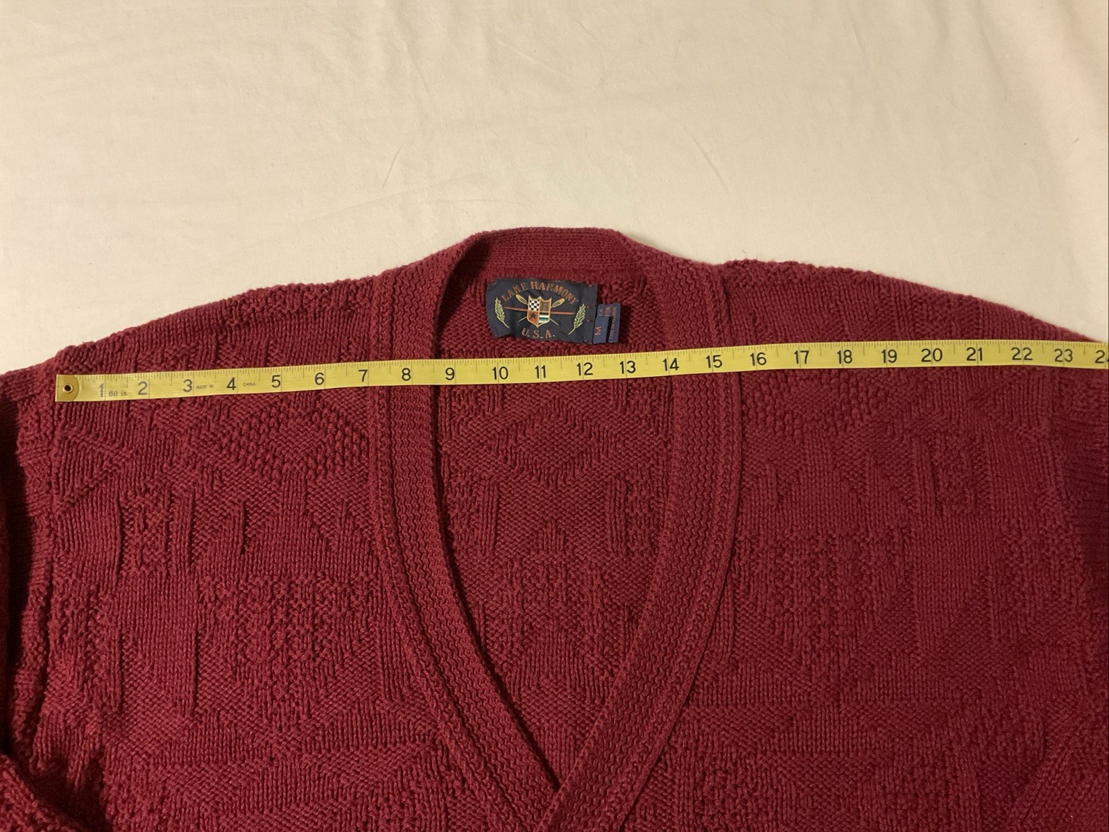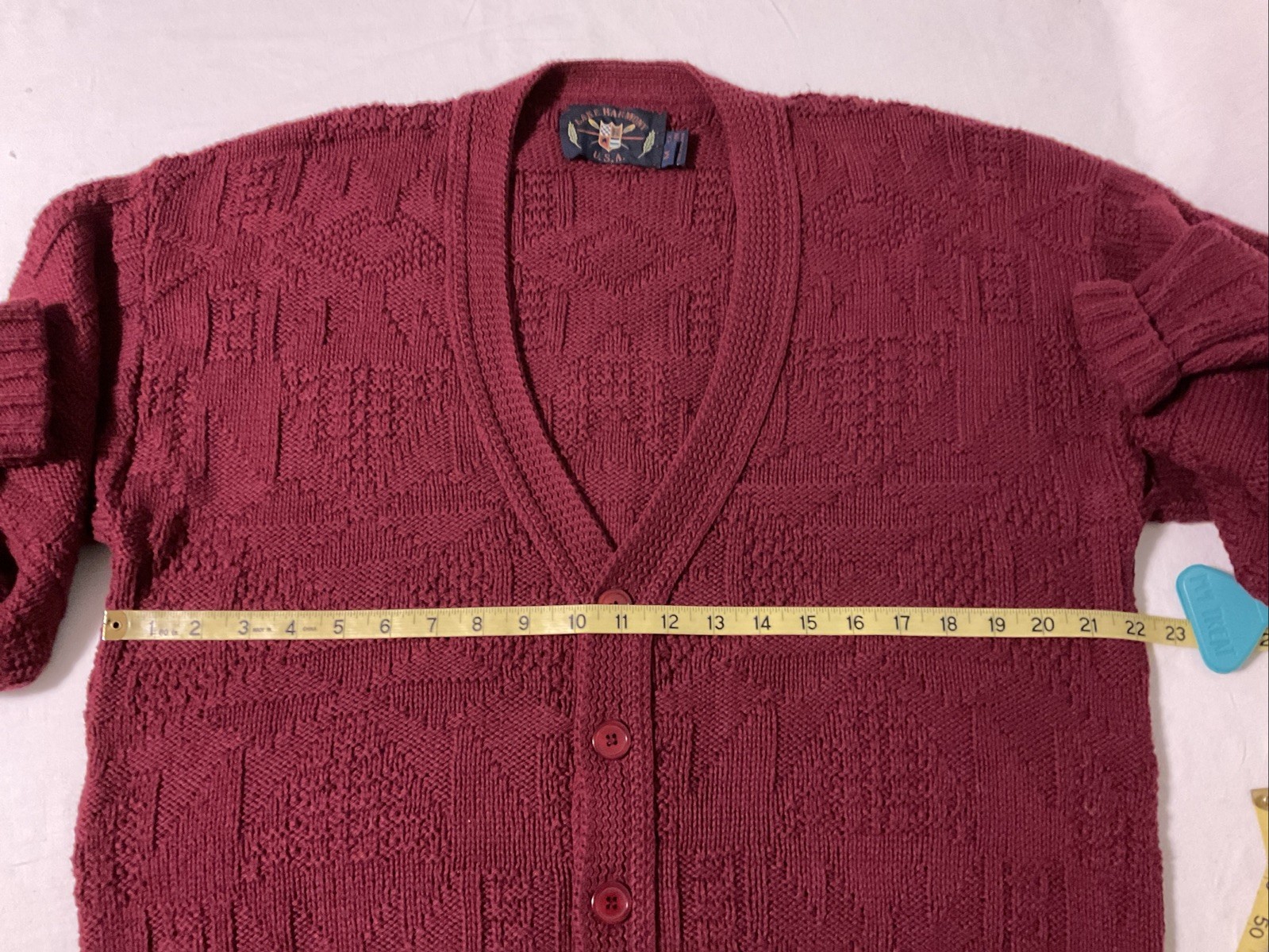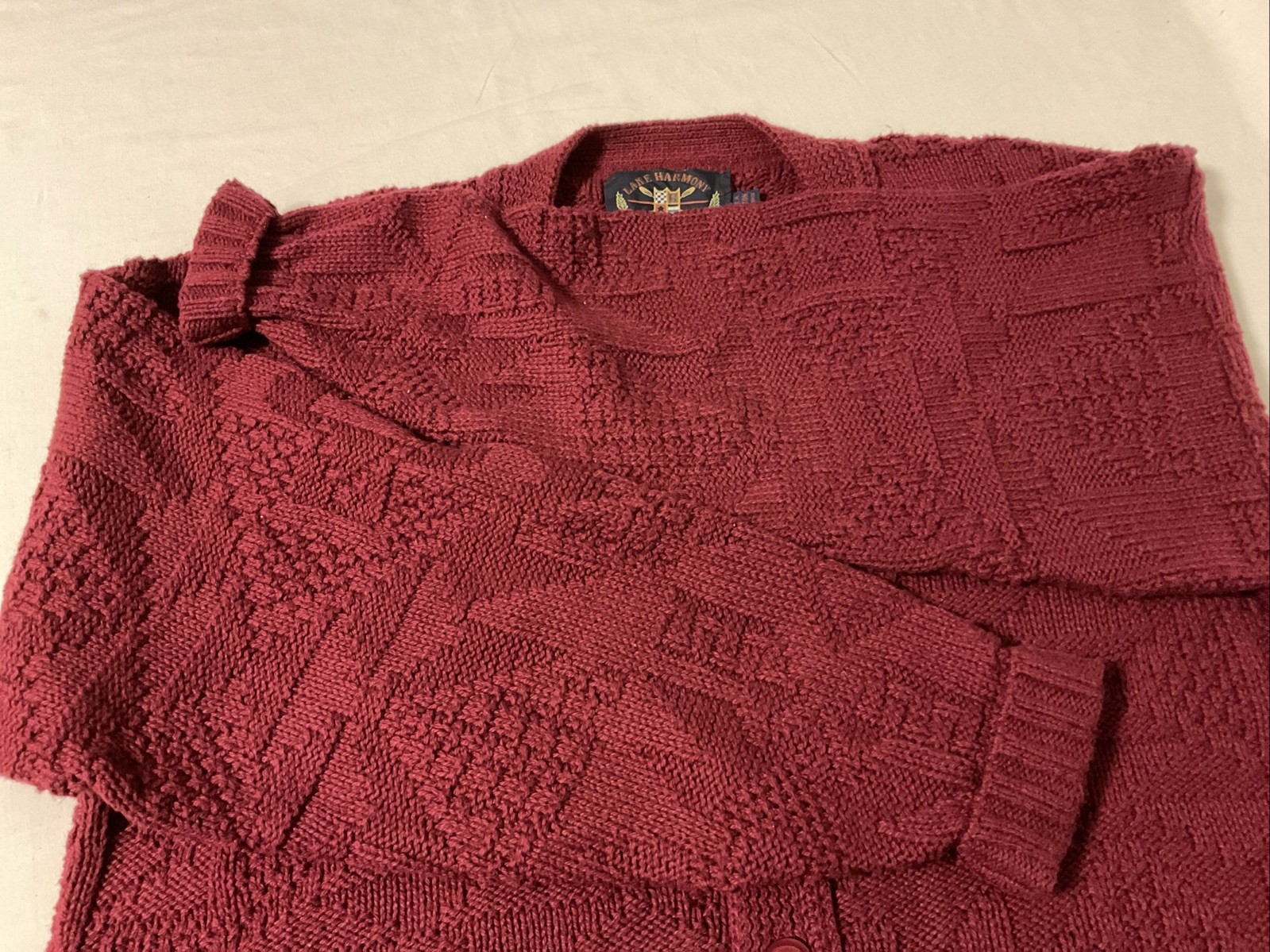 как выглядит Lake Harmony USA Made Maroon Red Cardigan Sweater Button Up Cotton Mens Medium фото