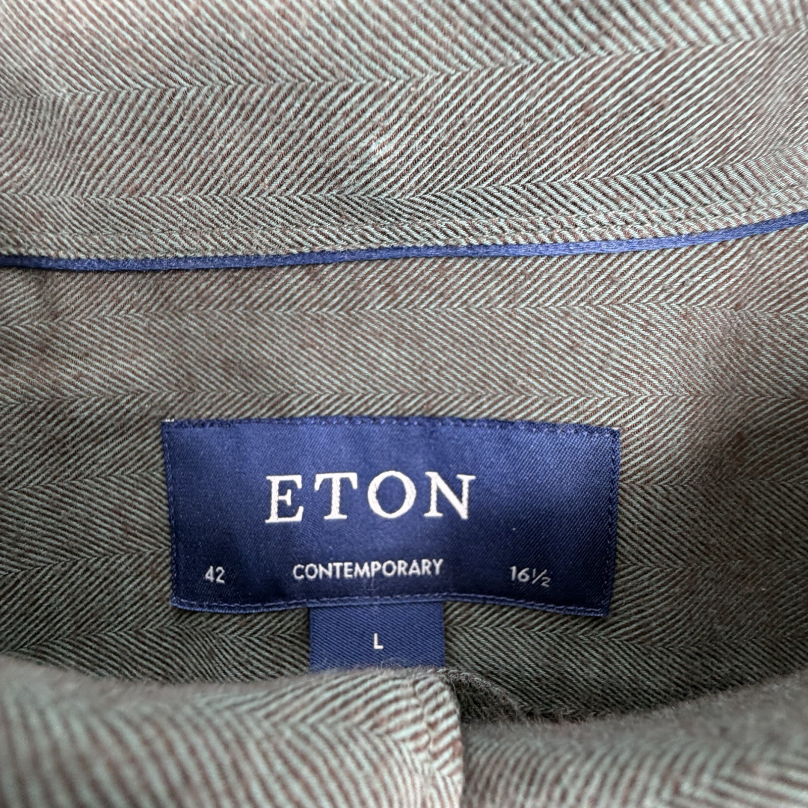 как выглядит Eton Dress Shirt Mens 16.5 Slim Fit Green Herringbone Modern Formal Classic EUC фото