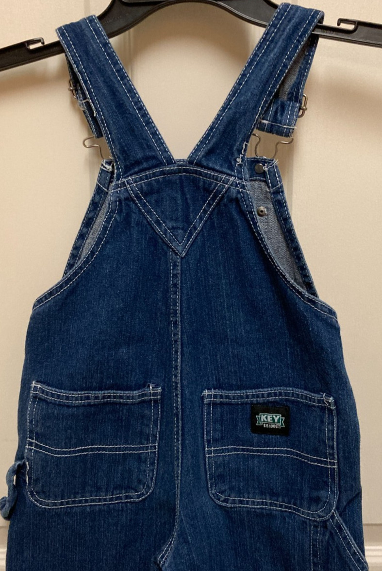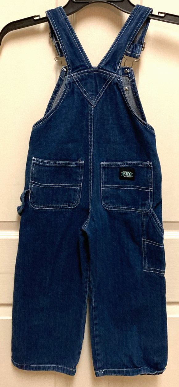 KEY Kids 100 Cotton Blue Denim Bib Overalls-Adjustable Straps Size 4