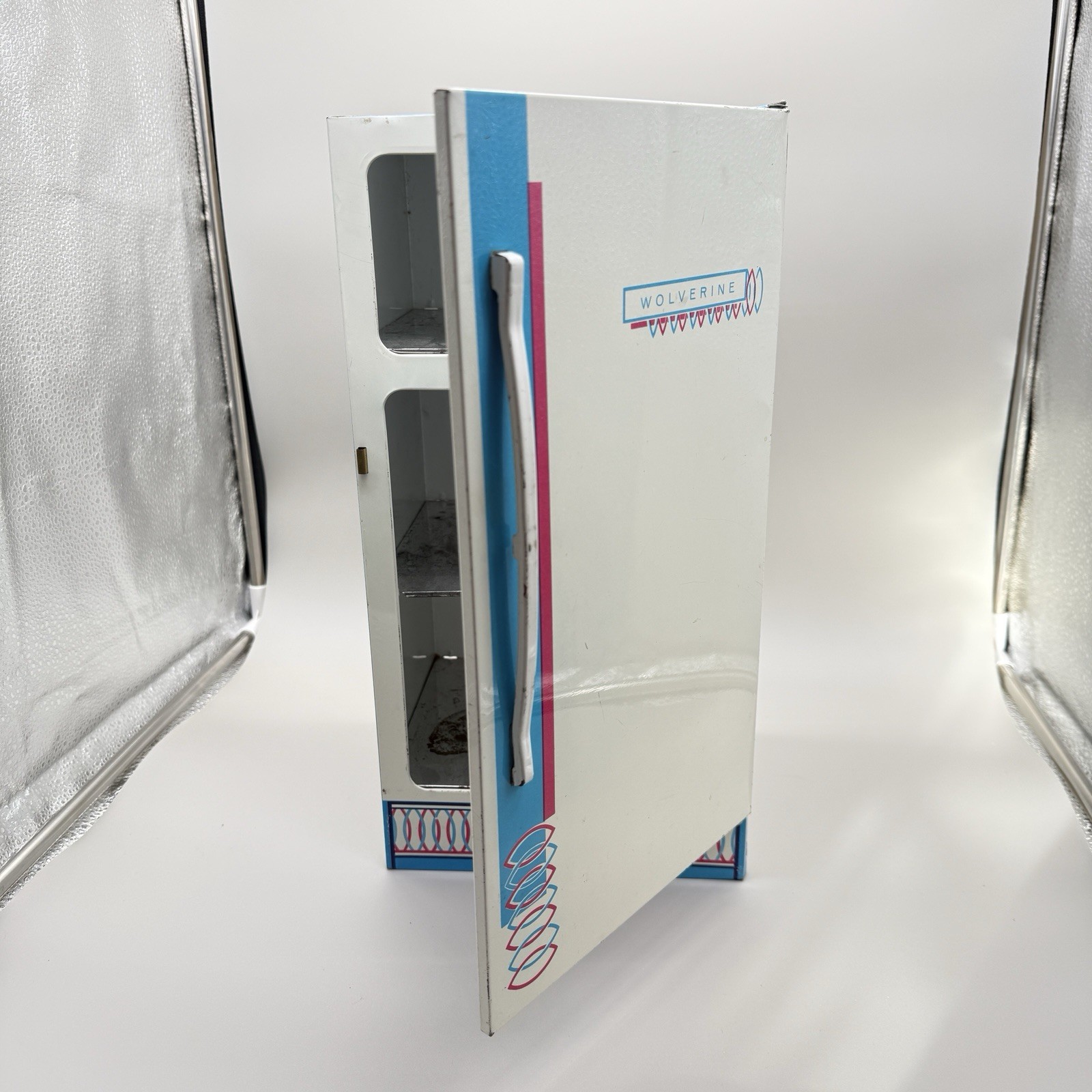 как выглядит Vintage Wolverine Metal Toy Refrigerator Retro Graphics Door Doesn t Stay Shut фото