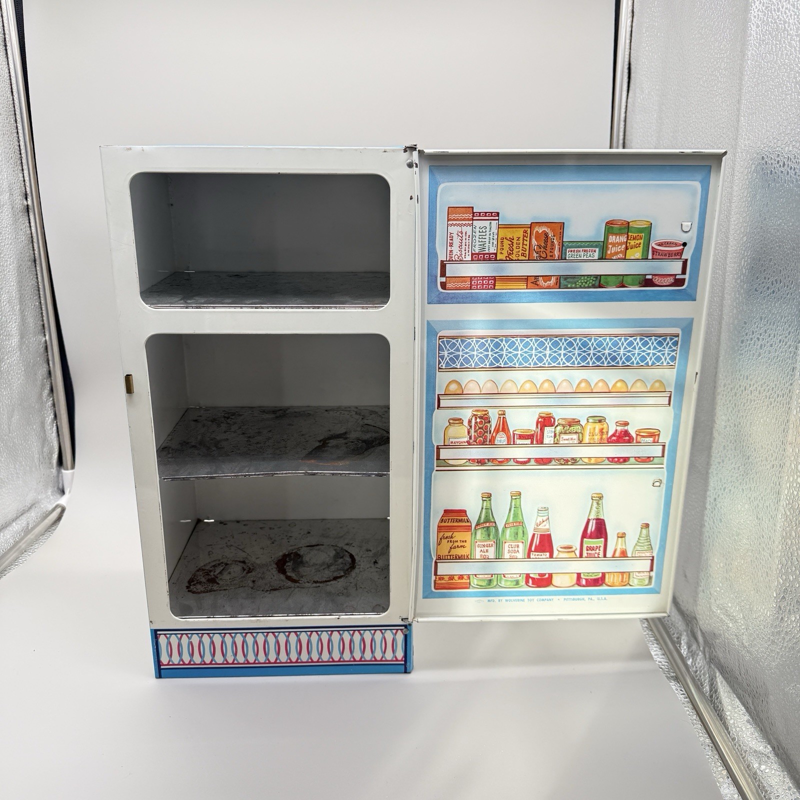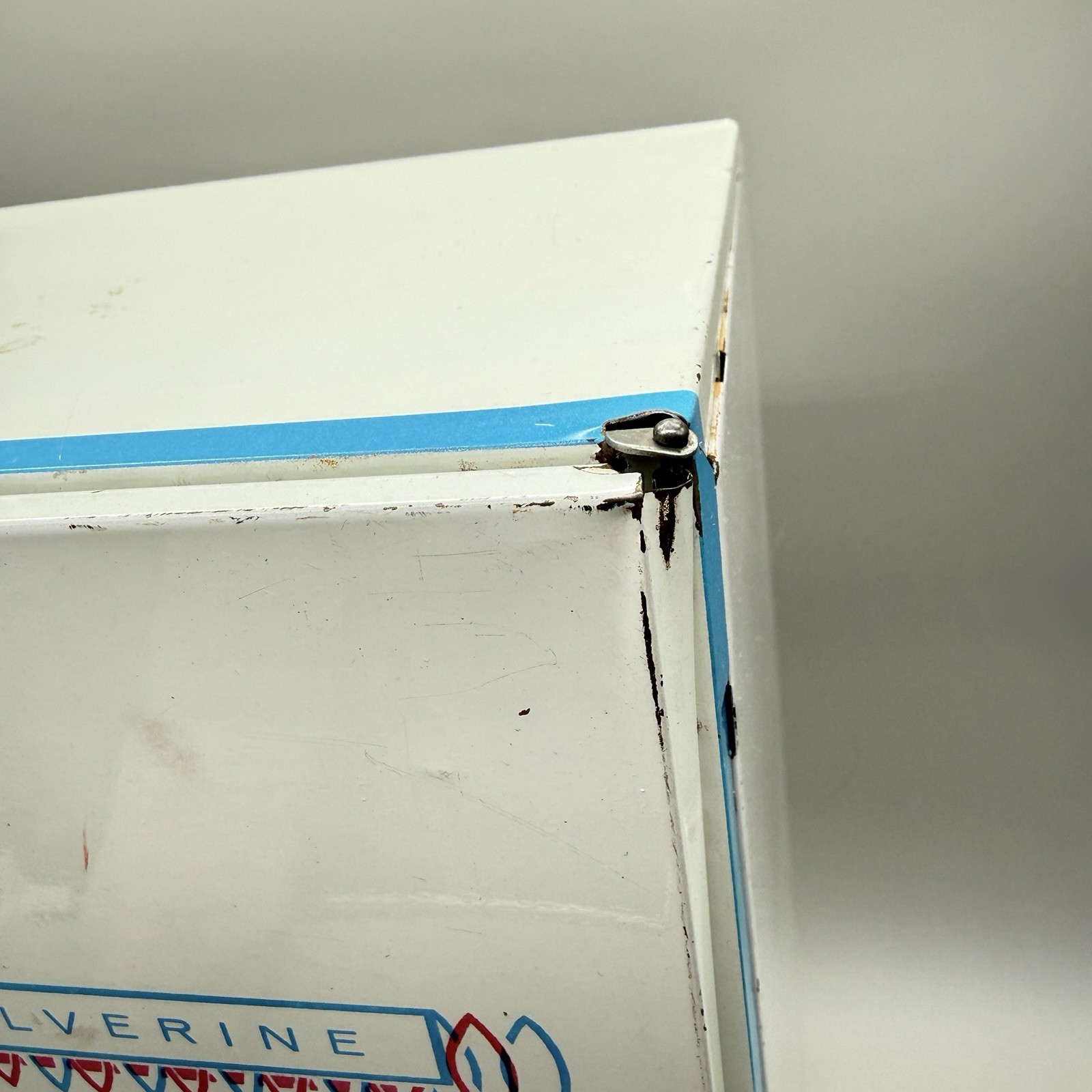 Vintage Wolverine Metal Toy Refrigerator Retro Graphics Door Doesn t Stay Shut