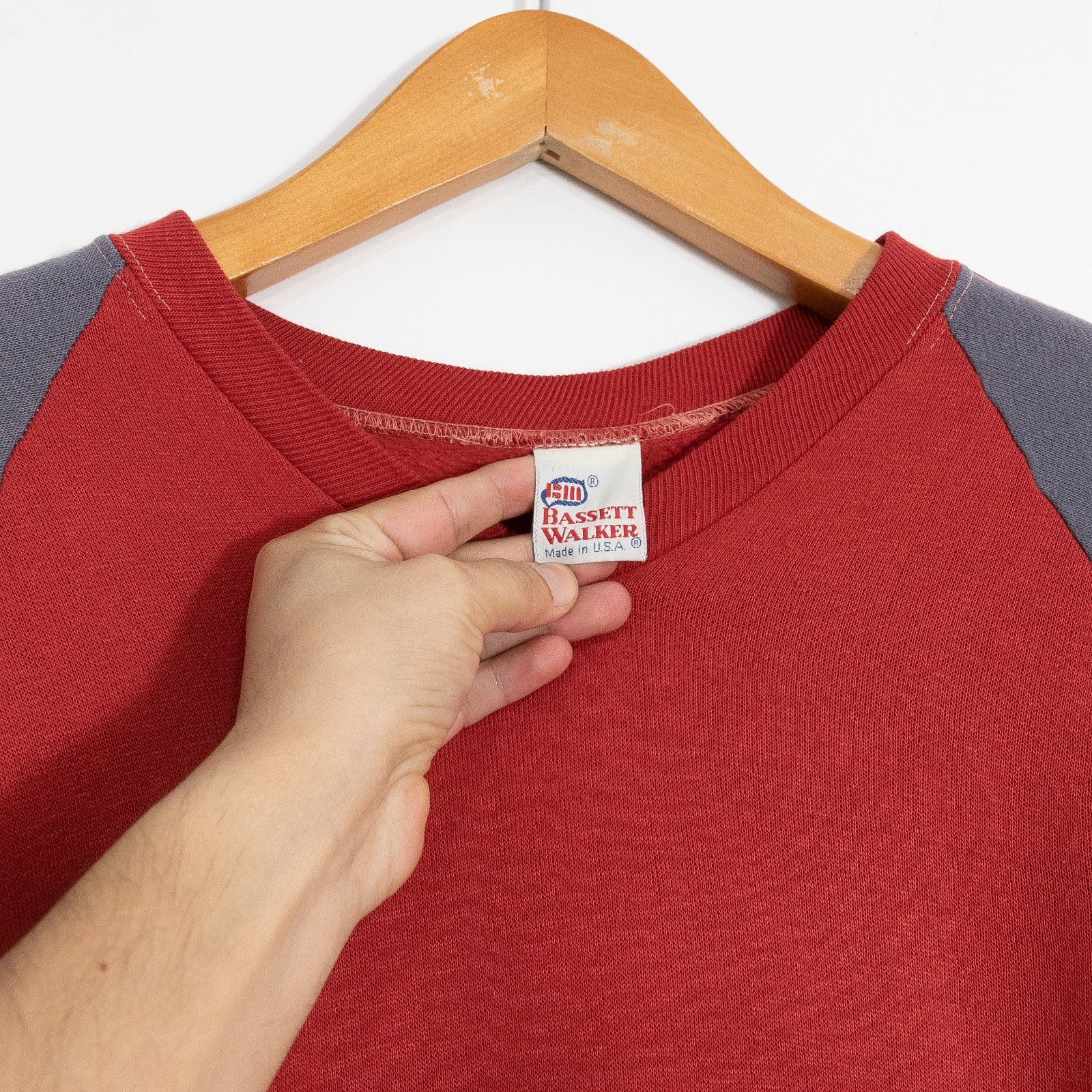 Vintage 80s Bassett Walker Raglan Sweatshirt Mens Large - V-Neck Distressed USA