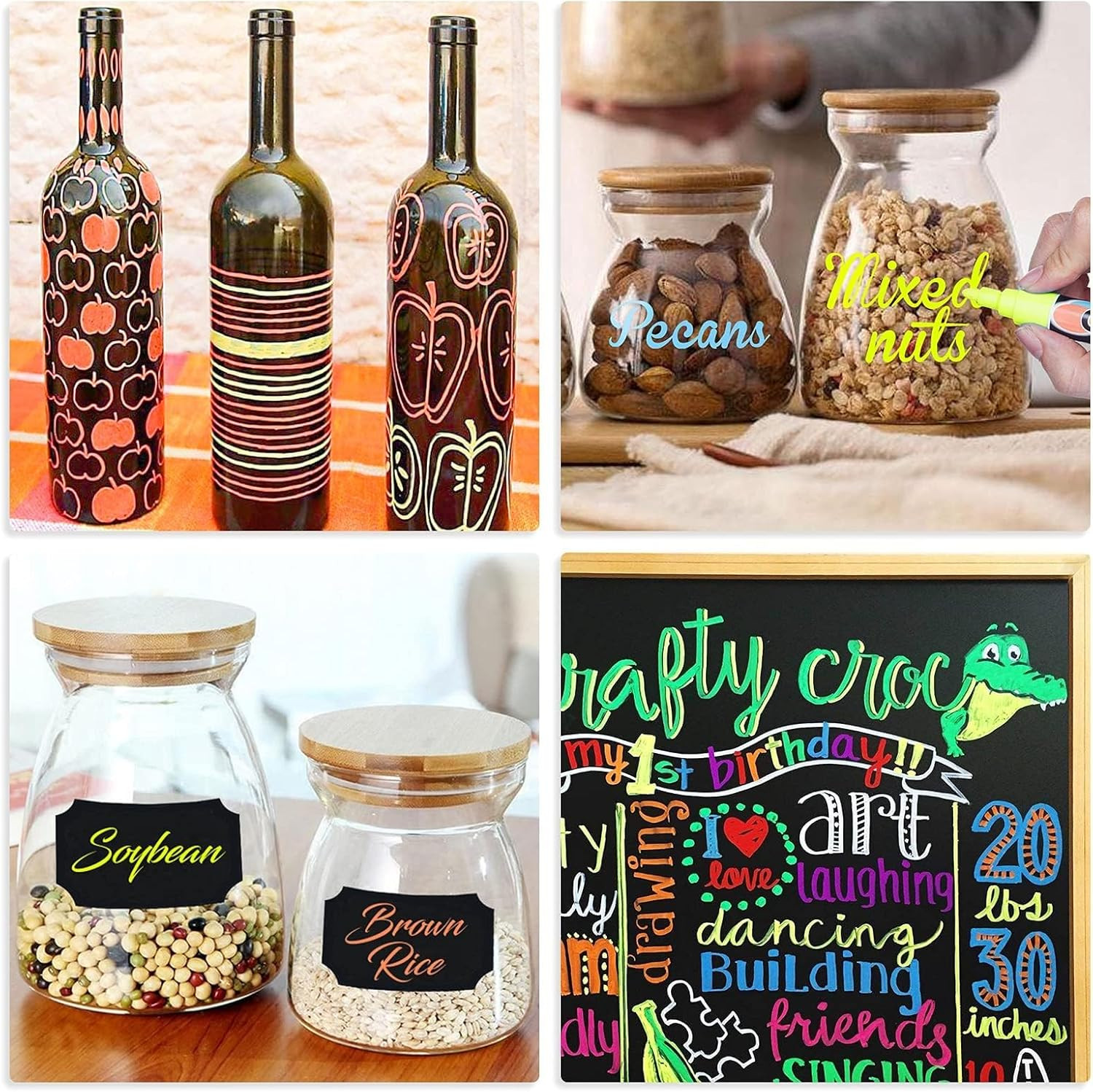 как выглядит Liquid Erasable Chalk Markers Pens - 12 Colors Washable Wet Erase Neon Makers фото