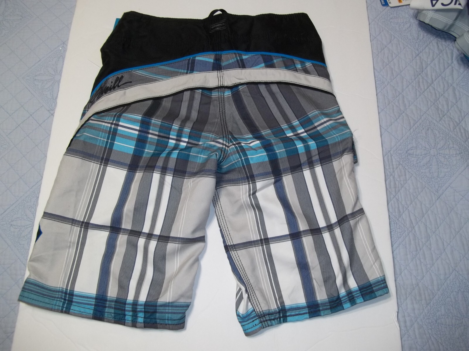 как выглядит New ONEILL boys 26 12 GRINDER UE blue gray black plaid board shorts swim suit фото