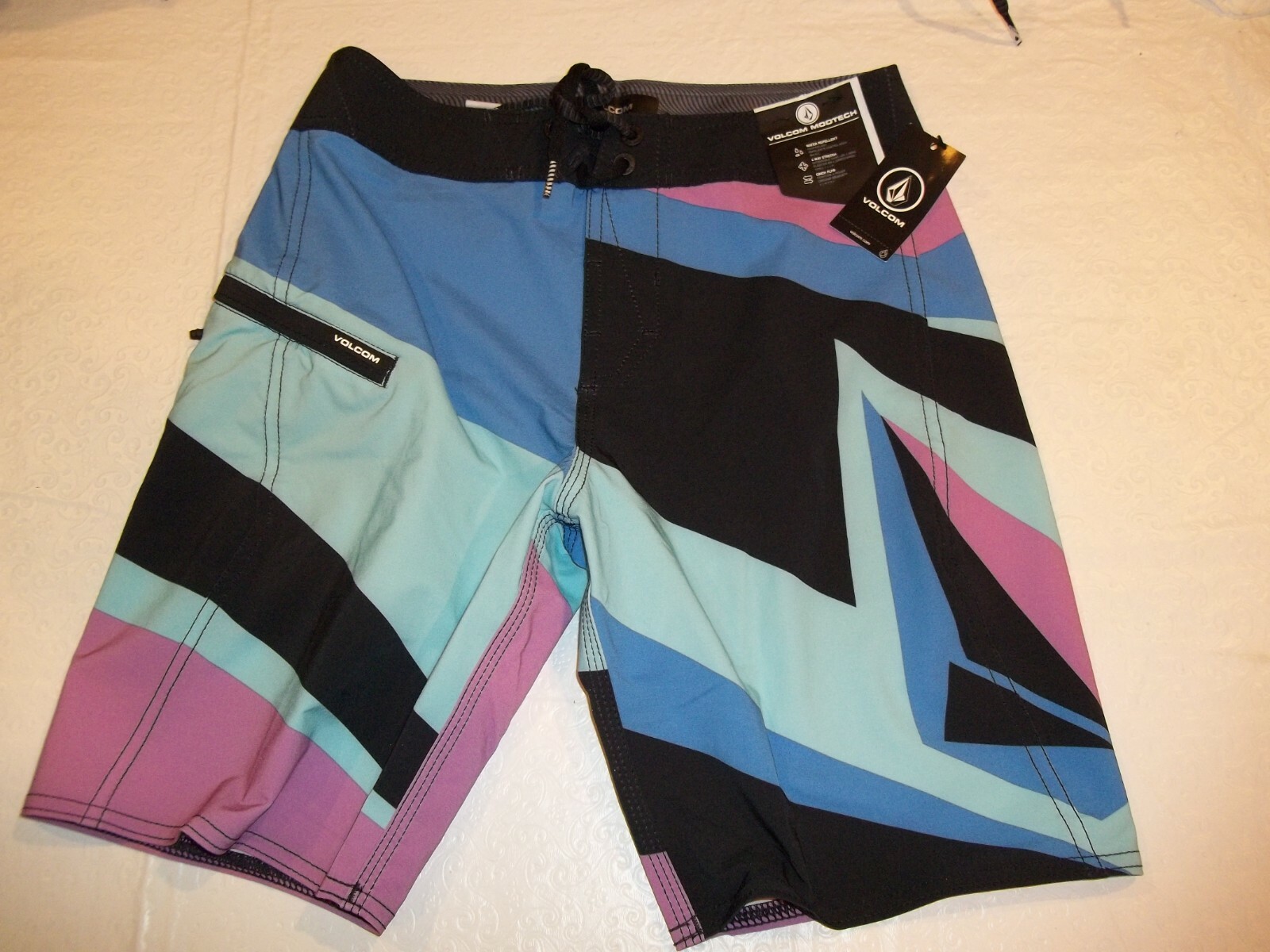 NEW Volcom boys 10 Slim Ransacked blue black purple board shorts swim suit trunk
