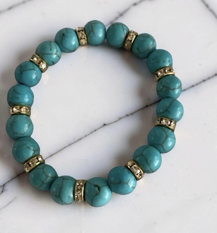 8 Bracelets Stackable Set Bohemian Boho Stretch Blue Gold Tone Women s NWOT