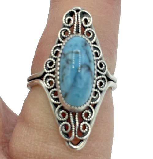 Sterling Silver Turquoise Ring Filigree Adjustable Size 8 Vintage