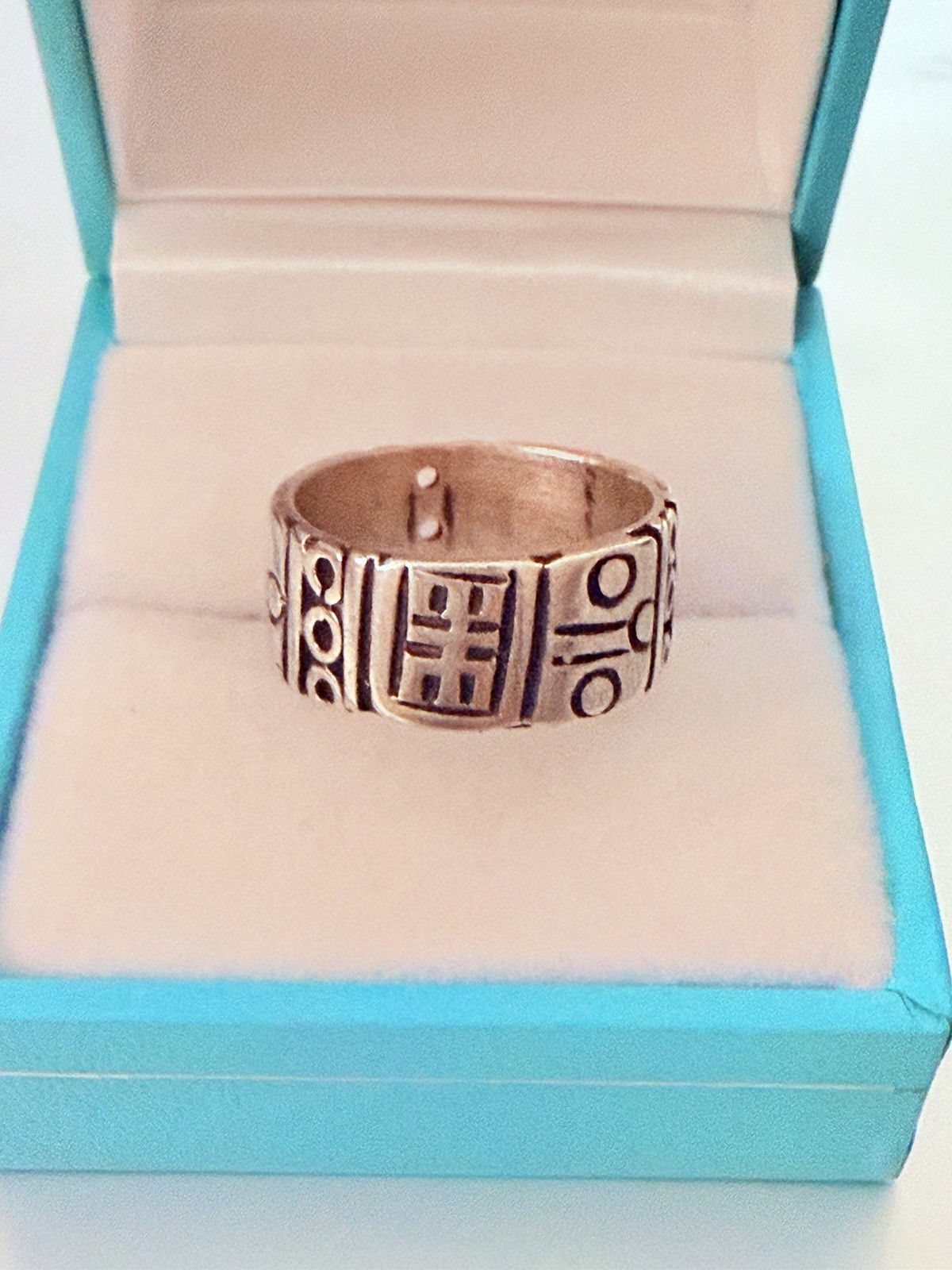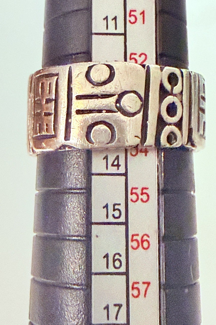 Estate VTG Taxco Mexico 925 Sterling Silver Aztec Tribal Marking Band Ring Sz 6